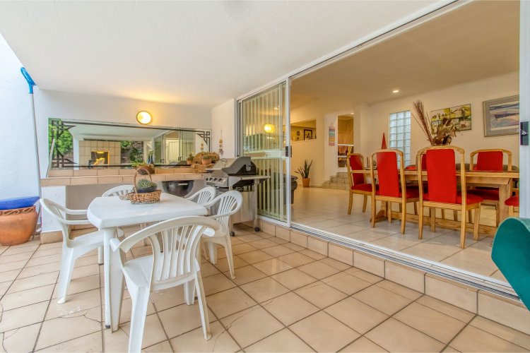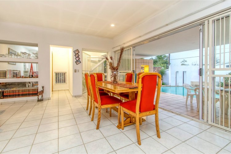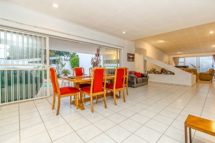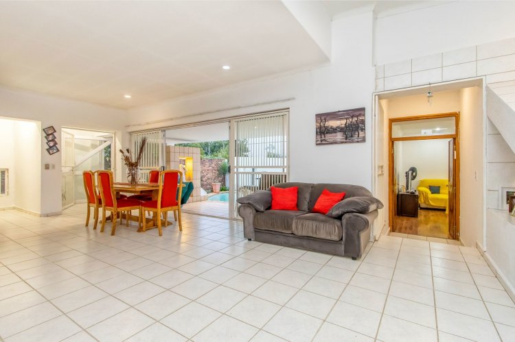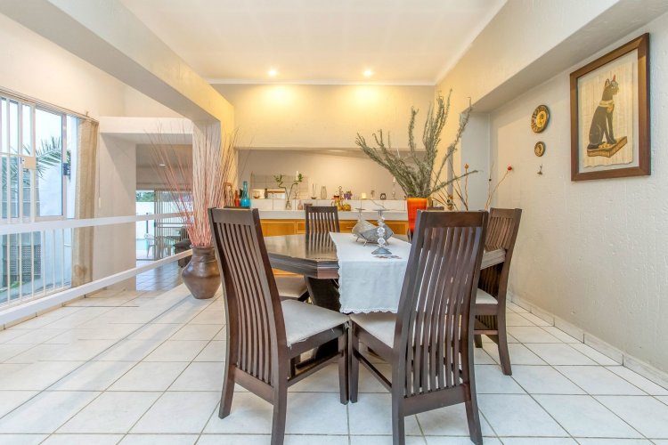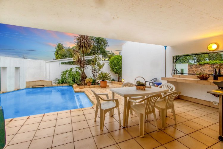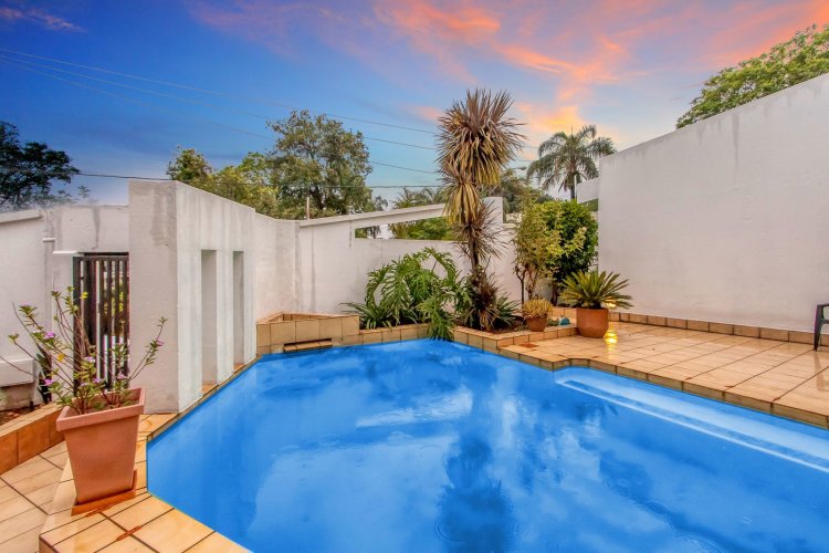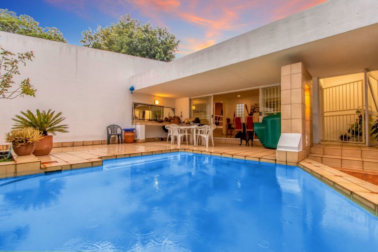 Situated in the highly sought-after, tree-lined family suburb of Orchards, this stunning home offers exceptional security and lifestyle appeal. The suburb is enclosed with monitored boomed access, and the property itself is positioned behind an additional 24-hour staffed boom, ensuring complete peace of mind. Inspired by the timeless beauty of Santorini, this home brings a touch of the Mediterranean to Johannesburg. Designed for low-maintenance, easy cluster-style living, it offers a true lock-up-and-go lifestyle without compromising on space or comfort. The open-plan entrance flows effortlessly into generously proportioned living areas, featuring white tiled floors throughout. These spaces open via sliding doors onto a covered patio overlooking a sparkling blue swimming pool—perfect for relaxed family living and entertaining. The centrally located kitchen is well-equipped and ready to evaluate your culinary skills, whether you are preparing intimate family dinners or hosting on a grand scale. Accommodation comprises four well-sized bedrooms. The primary suite is en-suite, while the remaining bedrooms share a second bathroom. Each bedroom is designed as a tranquil retreat, ideal for unwinding after long, demanding days. This home perfectly combines style, security, and effortless living in one of Orchards' most desirable locations.