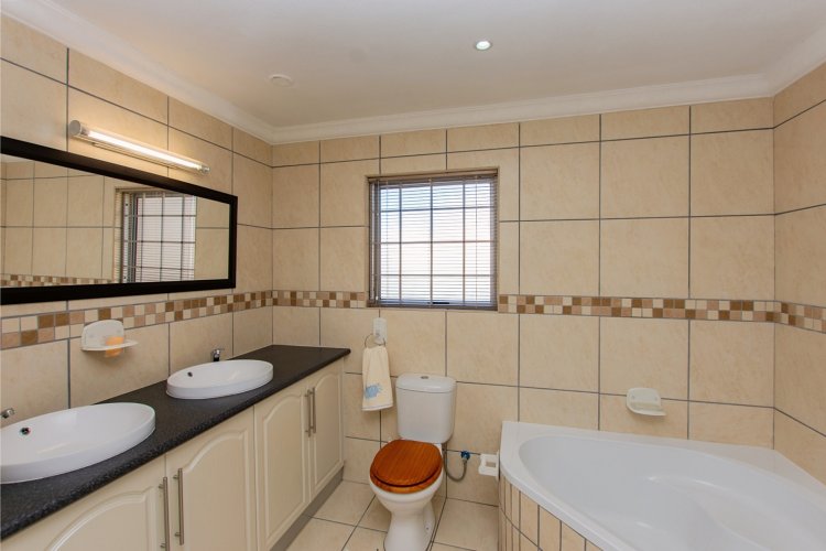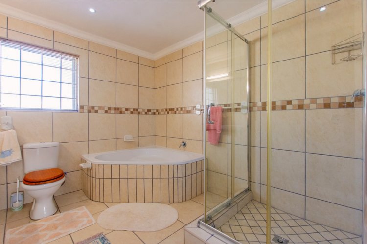This beautiful home features four spacious bedrooms, each with its own generous onsuite bathroom. In addition, there's a convenient extra guest toilet. The modern kitchen is a highlight, seamlessly flowing into the expansive lounge and entertainment area, perfect for gatherings. The property is fully secured with trellis doors, a solar system, an alarm system, and cameras for peace of mind. Enjoy the enclosed garden and a family-sized pool, ideal for all your outdoor activities. Additional amenities include a double garage and two extended enclosed parking spaces. The house offers underfloor heating for those cold winter days.