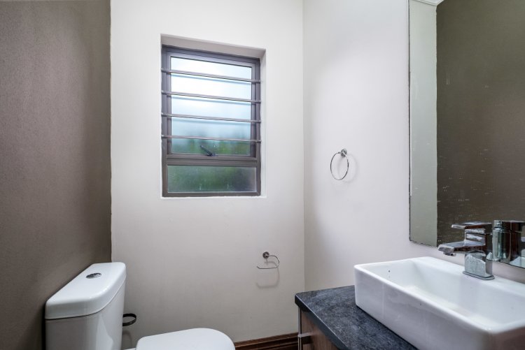 Accommodation The home offers four generously sized bedrooms, each a peaceful haven of comfort. • A downstairs bedroom with en-suite bathroom is perfect for guests or extended family. • Upstairs, the remaining bedrooms include a stunning master suite with a walk-in closet and interlinked study, ideal for working from home in privacy and comfort. All bedrooms enjoy built-in cupboards, abundant natural light, and serene views of the Boskruin Koppies. Upstairs also features a laundry chute and a bright, airy hallway with large windows that enhance the sense of space and flow. A guest toilet is conveniently located downstairs, while multiple skylights throughout the home flood the living spaces with natural light, adding warmth and character.