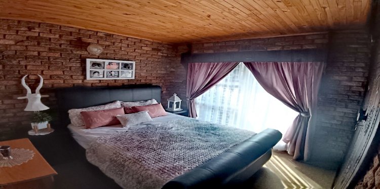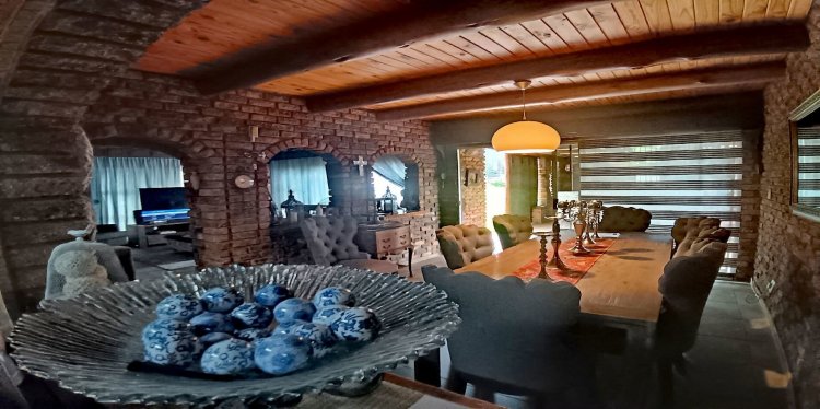 Sliding doors lead from the dining area into a covered braai and entertainment room — an exceptional all-season space overlooking the lush garden and sparkling pool. This inviting extension of the home offers effortless indoor-outdoor living and a perfect environment for relaxation or hosting guests. A private veranda off the main bedroom further enhances the sense of retreat and tranquility.