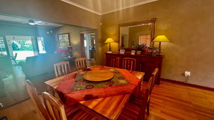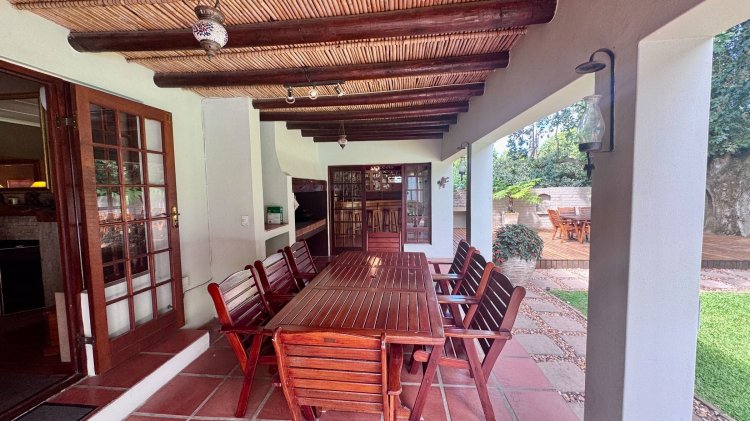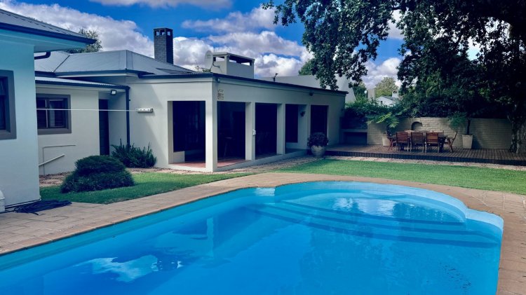 Welcome to your ideal family retreat. This beautifully appointed 4 bedroom home blends comfort and contemporary living with thoughtful design and generous indoor/outdoor spaces. Highlights include a stunning entertainment area with a lively bar and a sparkling swimming pool — perfect for summer gatherings and relaxed weekends. The handy storeroom offers flexible potential and can easily be converted into a flatlet. Solar power system with 12 panels, an inverter, and two batteries, providing energy efficiency. Situated in a secure, highly desirable neighbourhood, the property borders the scenic Koornlands River and is set among magnificent, century old trees, creating a tranquil and picturesque setting. This home offers the perfect balance of luxury and natural charm, ideal for family life. Furniture is available for purchase. Schedule your viewing today and discover your riverside sanctuary.