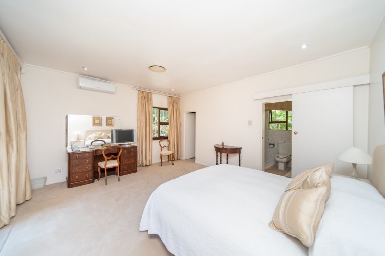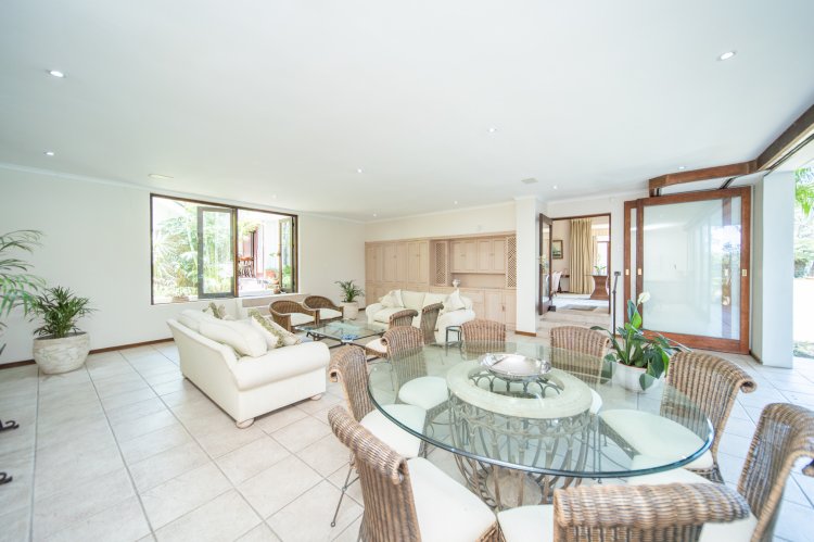 An impressive entertainment lounge, fitted with large stack-away doors, opens fully to the garden and pool area. Outdoors, a tennis court and a spacious lapa with its own kitchen provide the perfect setting for hosting long lunches and garden gatherings. The separate kitchen, complete with a breakfast nook, is well-sized and opens onto a sunny courtyard that connects effortlessly with the dining room and entertainment lounge ideal for everyday living and entertaining alike.