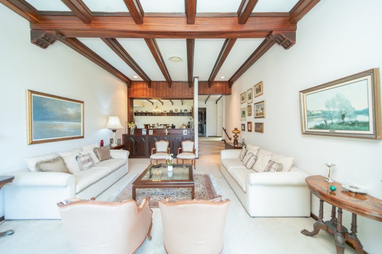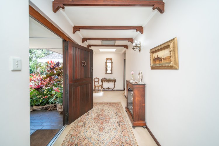 Accommodation comprises four generously sized bedrooms and three-and-a-half bathrooms, two of which are en suite. Two bedrooms are fitted with air conditioning. The master suite and guest bedroom both enjoy access to a private courtyard, offering a tranquil space for quiet morning moments. Additional features include three helper’s rooms with a full bathroom and a double garage. A rare opportunity to own a home of character, space and charm.