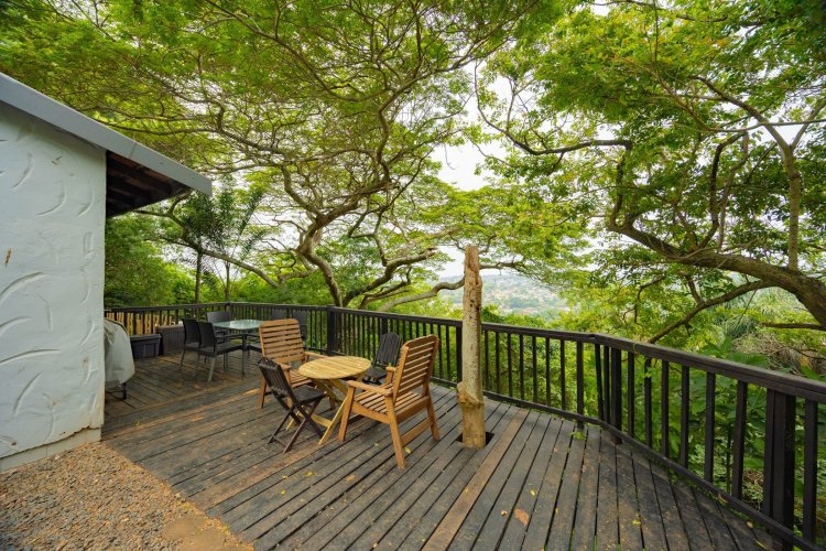 Overlooking pristine conservation land—with private access straight into nature —the property offers a rare sense of space, privacy, and tranquillity. Entertain effortlessly on the wooden deck braai area , perfectly positioned to soak in sweeping valley horizons and unforgettable summer sunsets. Poolside, a fire pit boma nestled beneath a majestic jackfruit tree creates a magical setting for evenings under the stars.