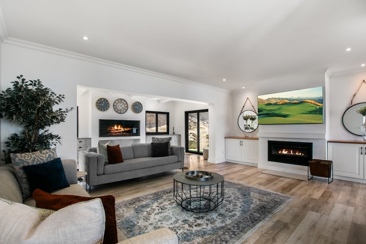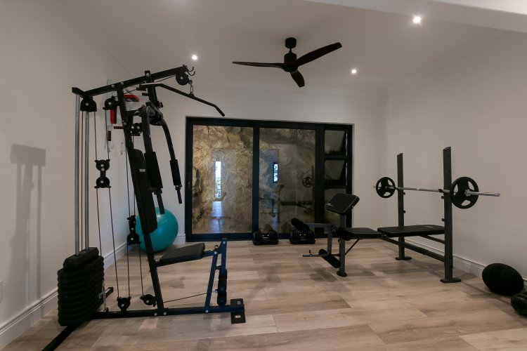 The lower level offers excellent versatility and can function as a self-contained two-bedroom apartment. It comprises two bedrooms, one en-suite with bath and shower, while a separate bathroom with a shower services the second bedroom. A spacious lounge opens onto a private patio, creating a tranquil indoor-outdoor flow. A gym room adds further flexibility and could easily be adapted to suit additional accommodation or lifestyle needs.