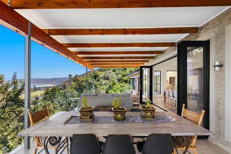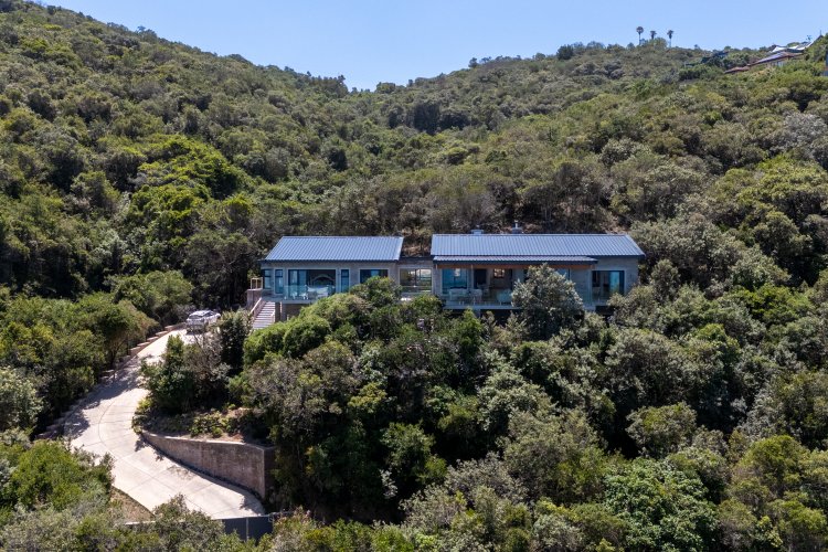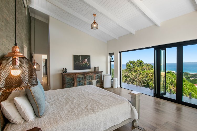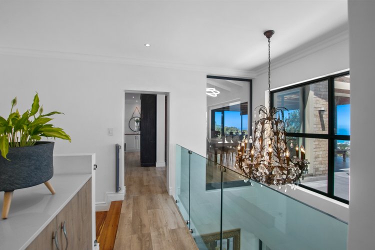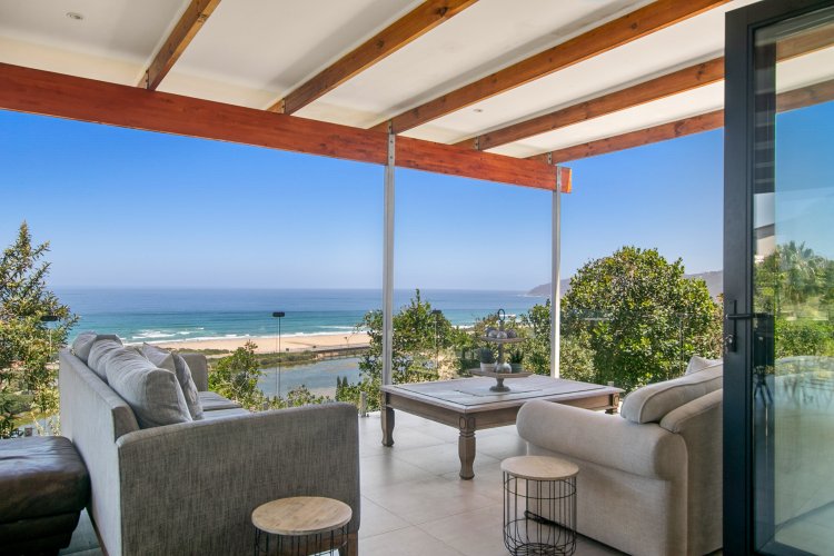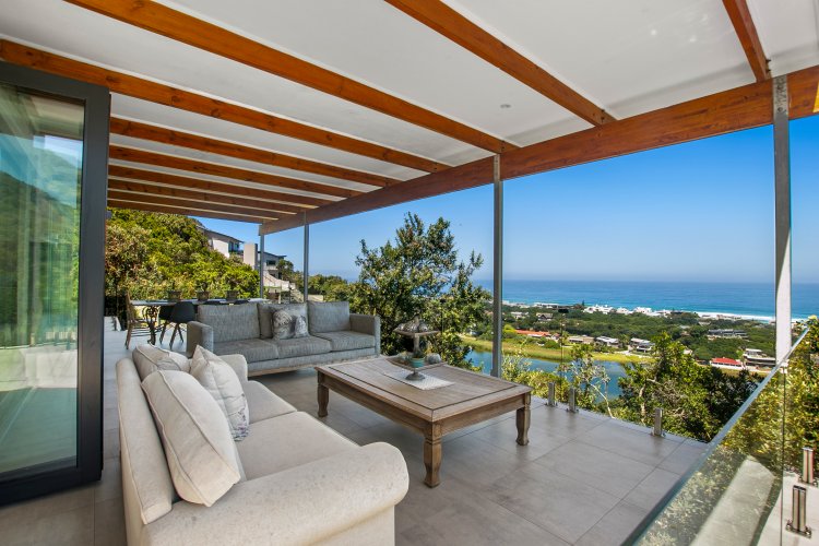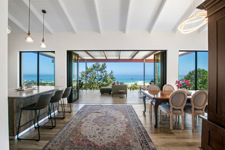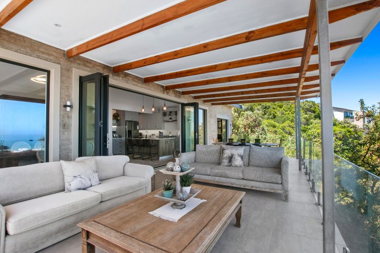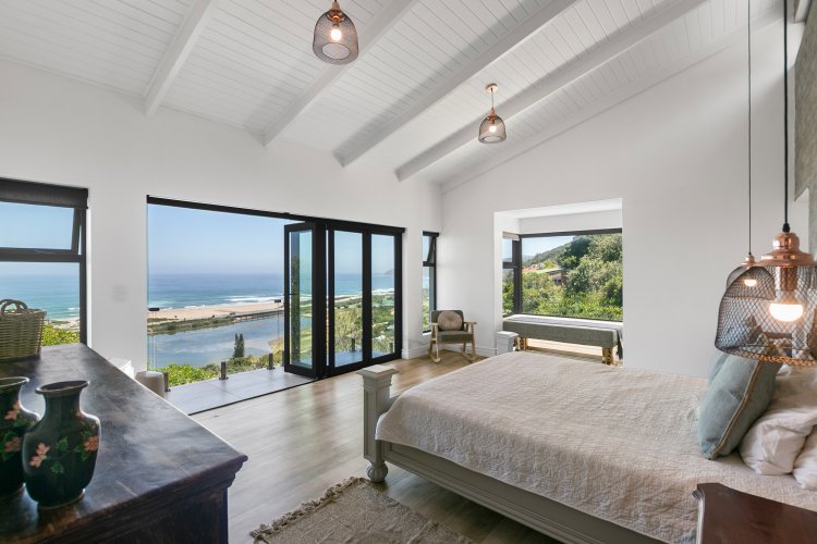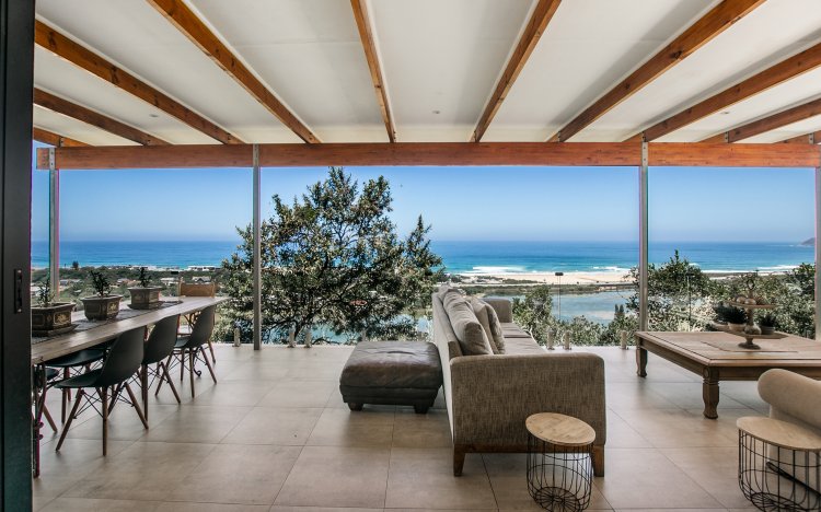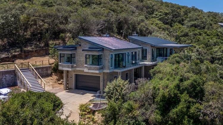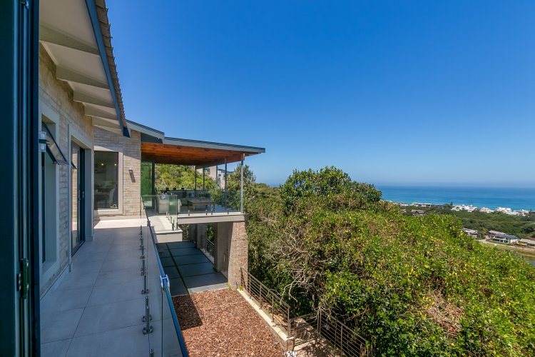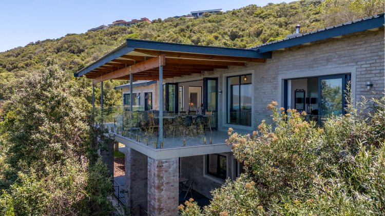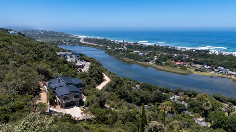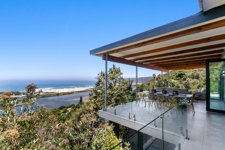 Perched on the cliffside in a quiet cul-de-sac in sought-after Whites Road, this stylish and contemporary double-storey home offers an exceptional blend of privacy, natural beauty, and modern luxury. Surrounded by indigenous vegetation and unspoilt nature, the property enjoys uninterrupted, panoramic views over the ocean and the meandering Touw River below.