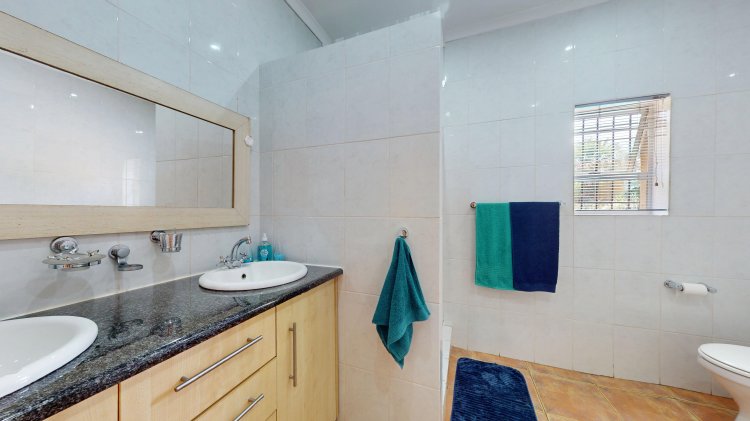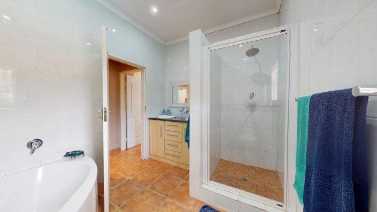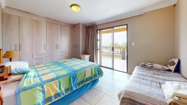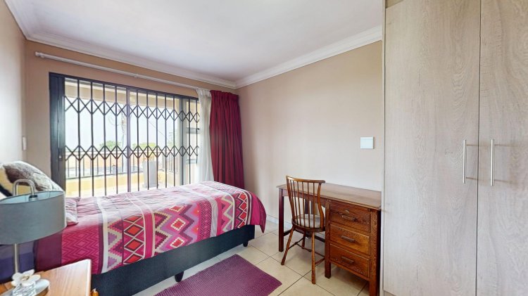 Bedroom 1: Built-in cupboards Bedroom 2: Built-in cupboards with views of the landscaped back garden Main Bedroom: Full en-suite bathroom, built-in cupboards, and tranquil views of the pool and garden