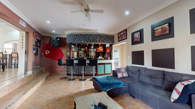 As you arrive at the property, you’re welcomed by two double electric garage doors and an additional single garage, providing ample parking. For added convenience, there is shade net parking that accommodates two more vehicles – perfect for guests or extra family cars.