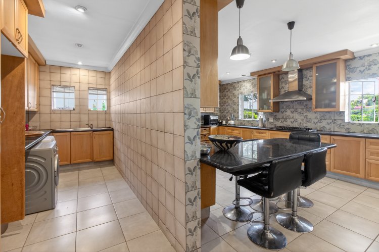 Entertaining & Family Living • Banquet-sized dining and entertainment room perfect for hosting on any scale • Large, well-appointed kitchen featuring: o Cherry wood cabinetry o Granite countertops o 5-burner gas hob o Centre island o Excellent storage o Separate, spacious scullery