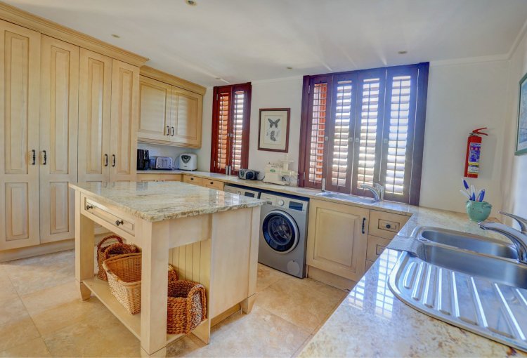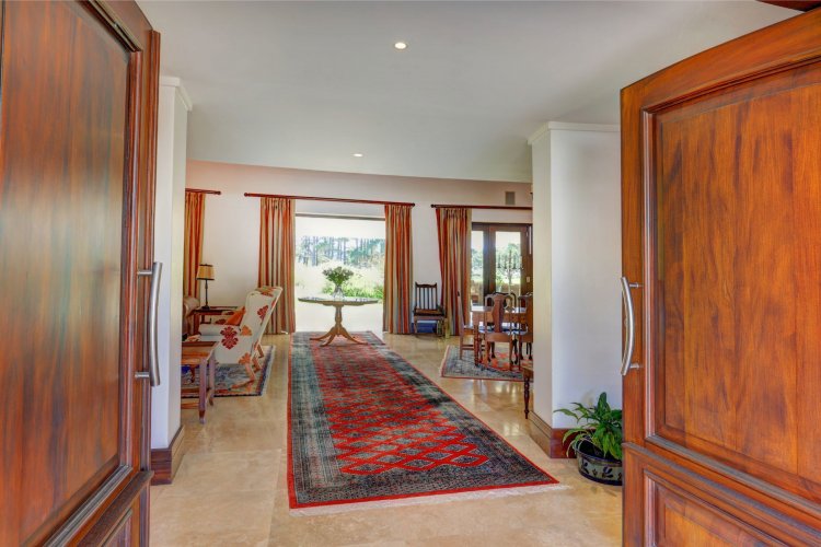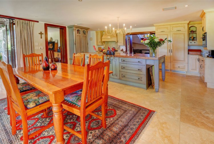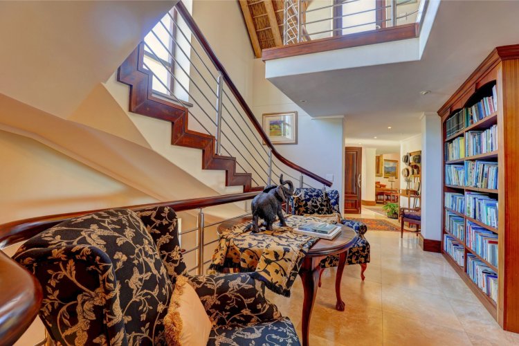 Located just moments from the Fancourt Clubhouse, the home blends timeless architectural elegance with refined country-style living. Generous proportions define the interior, which includes five spacious bedrooms, a private study, an atmospheric wine cellar, and a distinctive country kitchen that forms the heart of the home ideal for relaxed family living and effortless entertaining.