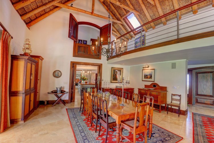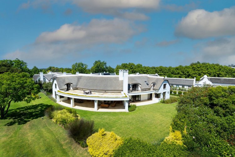Perfectly positioned and north-facing. This exceptional Cape Dutch residence is a rare offering within the prestigious Fancourt Golf Estate. One of only a select few homes to boast an impressive circular driveway flanked by four garages and built across two erven, this property immediately sets itself apart in both scale and presence.