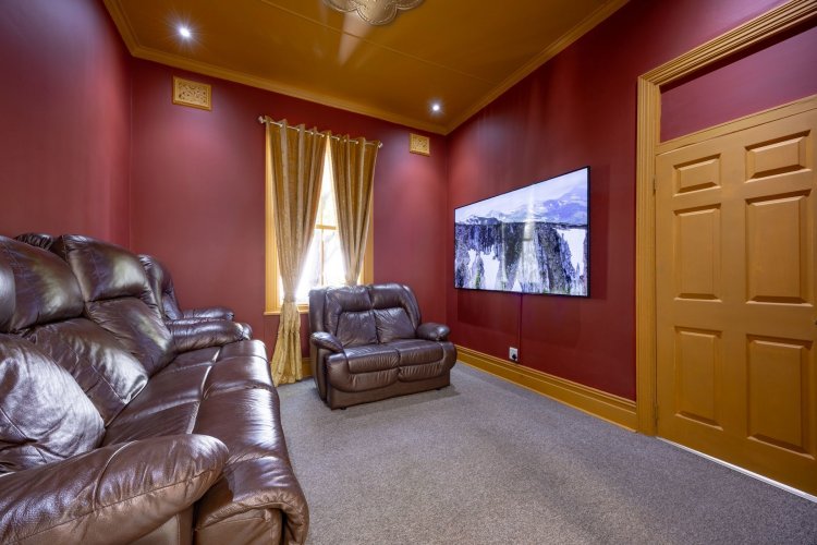 The master suite offers a serene retreat with high ceilings which interleads onto a large open balcony overlooking the pool. Host gatherings are welcome in either the entertainment/ pool area or the theatre room.