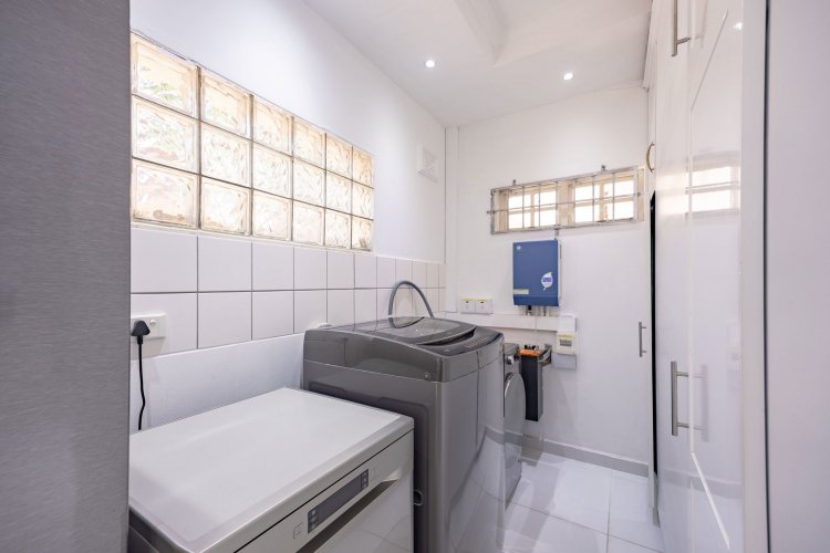 Two lock up garages are provided. There is also an open space where three cars can fit comfortably. Another open parking bay is provided at the main entrance of the home.