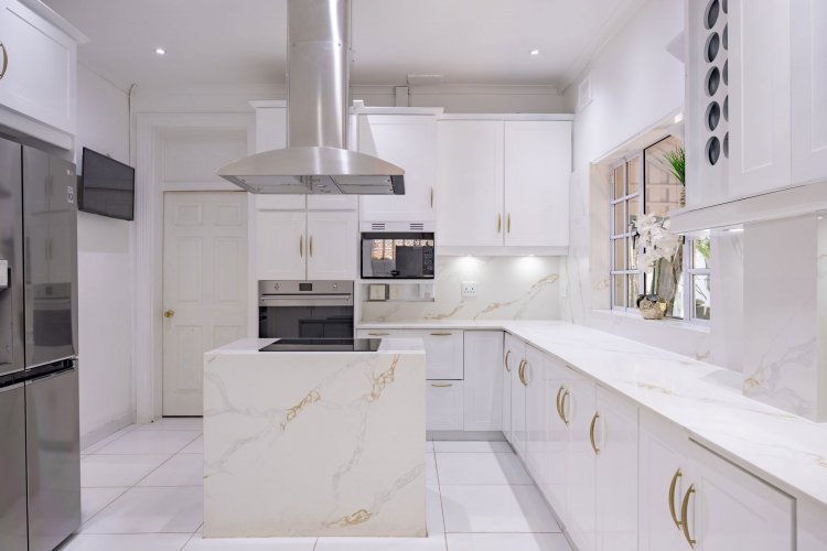 On the lower level you will find three spacious Bedrooms with ample built in cupboards. The kitchen, a culinary masterpiece which features oversized quarts counter tops and blissful white finishes throughout.