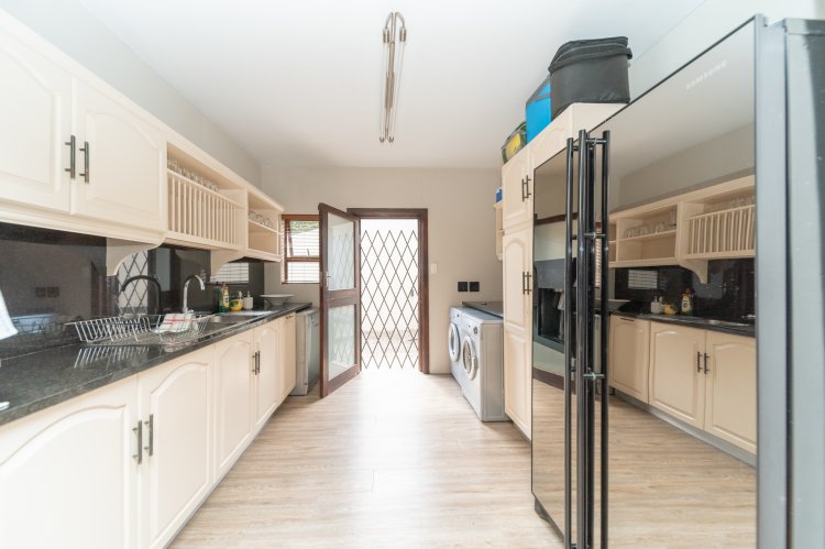 Designed for effortless living and entertaining, the home welcomes you into generous open-plan living areas downstairs, where the lounge, dining room and modern granite kitchen flow seamlessly together. The kitchen is complemented by a separate scullery and laundry, ensuring both style and practicality. A private one-bedroom flatlet provides flexibility for extended family, guests or additional rental income, while an outdoor storeroom adds further convenience.