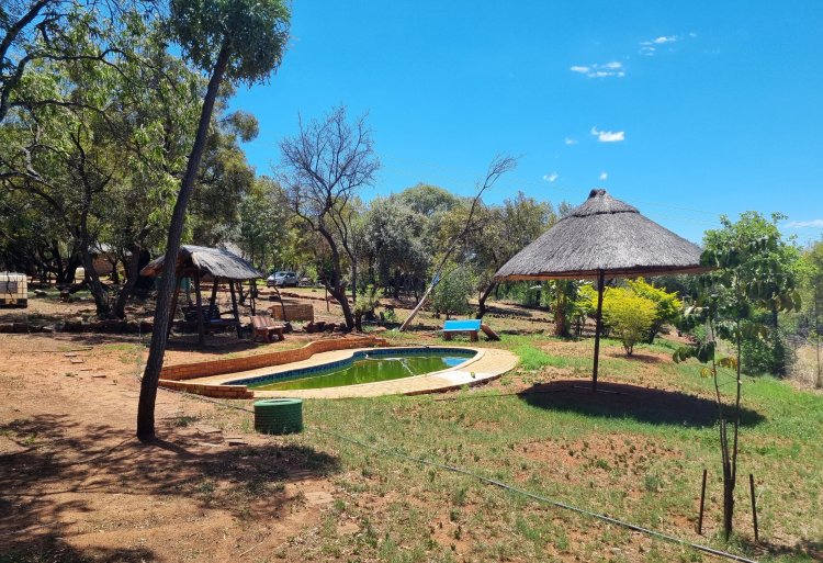 Your Tranquil Country Escape Between Rustenburg & Swartruggens Welcome to Twin Oaks, a peaceful countryside haven where wide-open spaces, fresh air, and breathtaking views come together to create a truly special lifestyle. Perfectly positioned between Rustenburg and Swartruggens, this 8.4-hectare estate is ideal for families, nature lovers, and anyone dreaming of space, privacy, and outdoor adventure. Enjoy relaxing game drives, spot wildlife, or hike to the top of the well-known koppie for unforgettable views—this is country living at its finest. Main House (Thatch Roof) This charming thatched home offers a warm and inviting atmosphere, with spacious living areas designed for effortless everyday comfort and easy entertaining. 3 Bedrooms – Two with ensuite bathrooms, plus an additional guest toilet. Open-Plan Layout – A comfortable flow between the kitchen, dining, and lounge areas. Well-Equipped Kitchen – Featuring both gas and electric stoves, plus a handy scullery. Indoor Braai & Bar – The perfect spot to entertain all year round. Patio With a View – Overlooking the mountains and roaming wildlife. Outdoor Extras You’ll Love Large Lapa with built-in braai—ideal for hosting friends and big family gatherings. Sparkling Pool for cooling off on warm summer days. Strong Borehole & Irrigation – Three pumps, a 5000-liter tank, and full irrigation to keep your garden flourishing. Security – Fitted with cameras and an alarm system for your peace of mind. Second Home & Additional Buildings Second Thatched House – A cozy 2-bedroom home with 2 bathrooms, an indoor braai, and a lovely stoep with built-in braai. Farmer’s Cottage – Ideal for staff accommodation. Wooden House (Incomplete) – A fantastic opportunity to finish and customize for extra income or extended family.