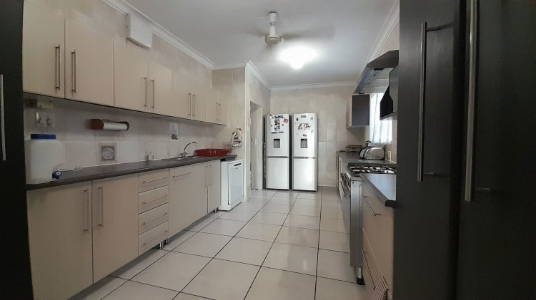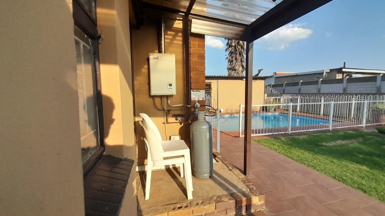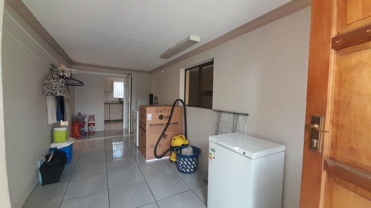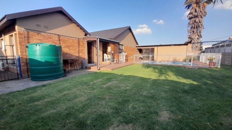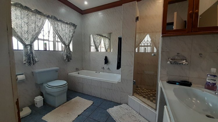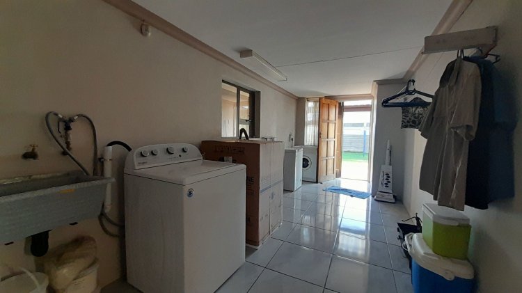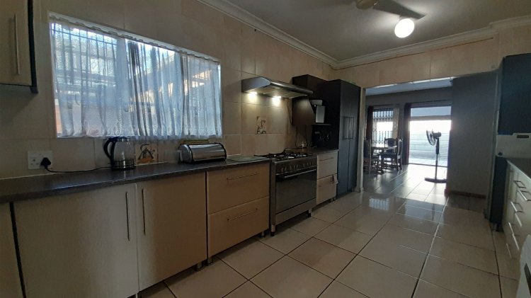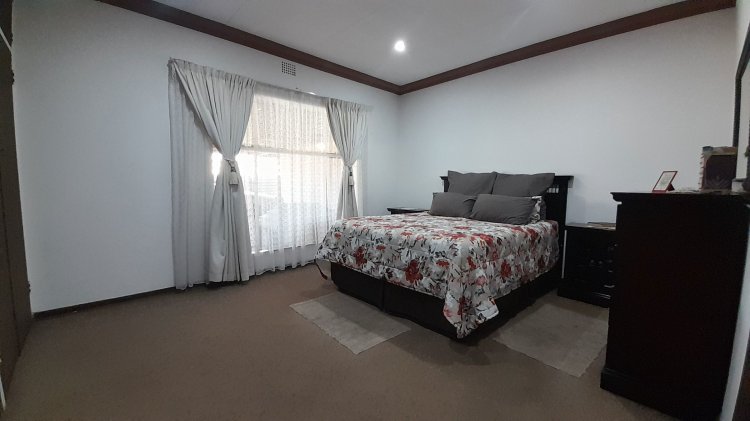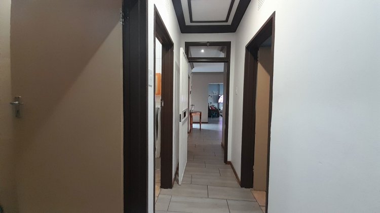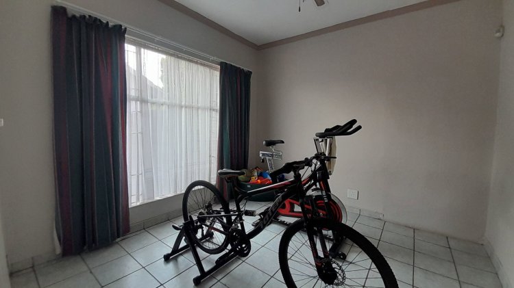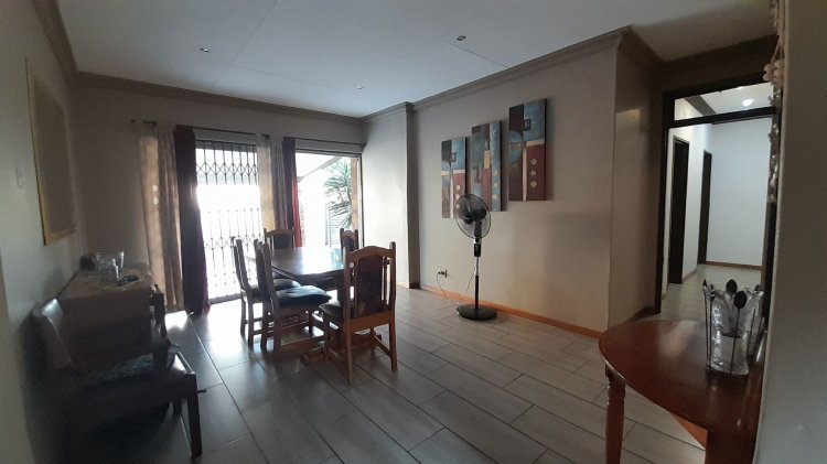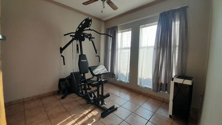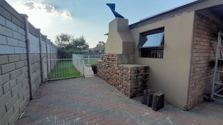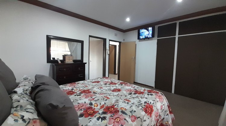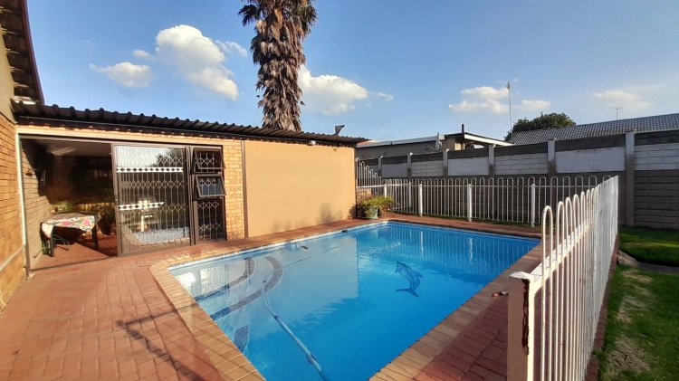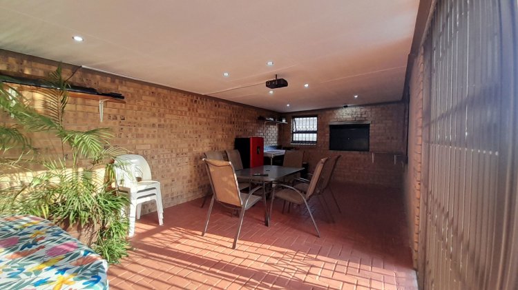 A lovely, spacious family/TV room provides the perfect space for relaxation and quality time together. Entertain with ease in the covered enclosed patio area, complete with a built-in braai, overlooking the sparkling swimming pool and immaculate, well-maintained garden — the perfect setting for relaxed family living and memorable gatherings. This property boasts two separate entrances, offering added convenience and accessibility. It features a single garage, as well as an additional enclosed covered parking area with shade netting in front of the garages for extra vehicle space. Extra Features: Solar Panel for Pool Alarm Beams
