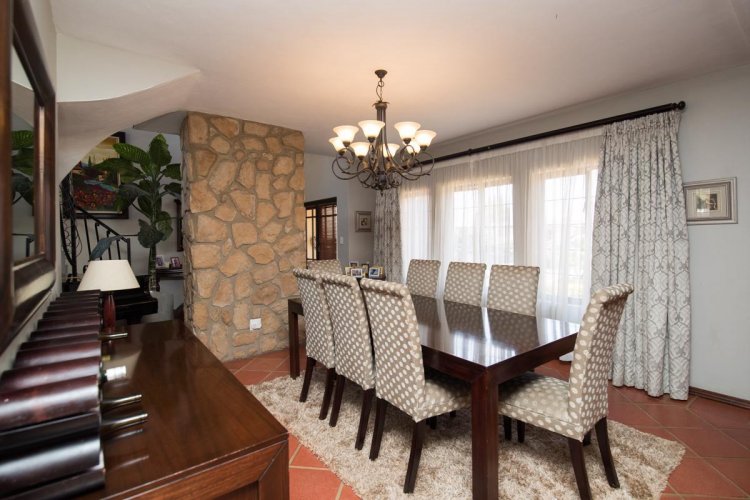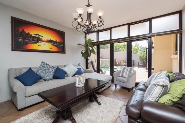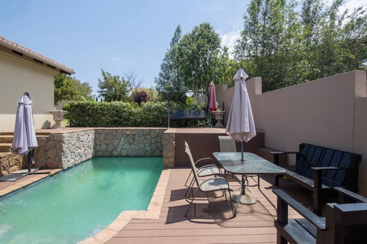 What to do when your children want to play outside, whether it is to kick a ball, have a picnic, go for walks, cycle, jog or just hang out with friends Venture around the estate and you will notice various bird species, bunnies, mongoose and small buck. The fauna and flora is truly enjoyable throughout the year. Some of the parks also feature jungle gyms, a cricket pitch as well as a giant chess set. Apart from the lovely garden at the back of this home, with a swimming pool and an under roof patio, a gate leads into one of the many parks. This is an ideal family home in a safe and secure environment. Let's now look at the home itself. This stand is much larger than the average properties in the estate and is situated in one of the more prestigious roads. This property has an immaculate front garden and driveway, with three garages and ample off-road parking. Best features: The semi open plan living areas and an entertainment room with a built-in gas braai. Sliding doors lead onto the under-roof patio, extending into the landscaped garden looking onto the swimming pool. Do not forget the back gate which gives you access to one of many parks. This family home is spacious and in a good condition. Structurally the house is sound and it makes a good first impression. Your family will feel even more secure in the home, as most of the windows feature burglar bars. IFV has excellent security, from the finger print system at both gates, electrical fencing, CCTV and Security Services at all times of the day and night.