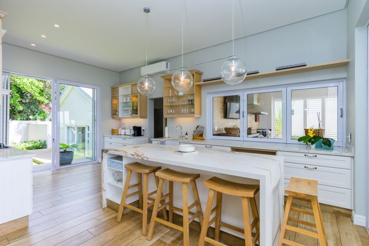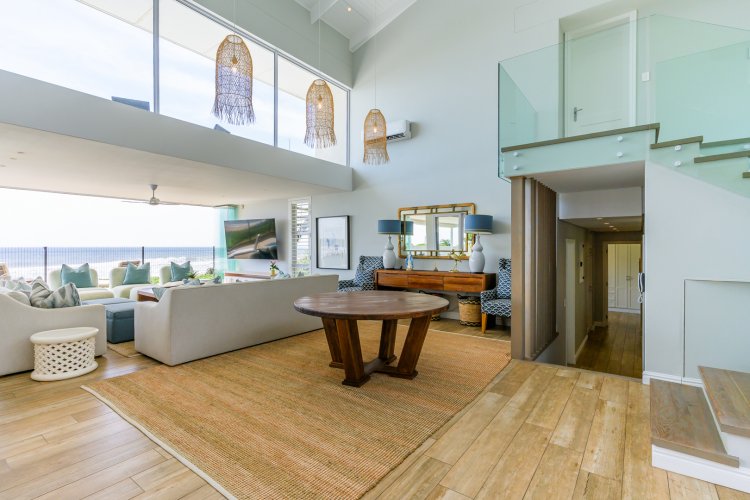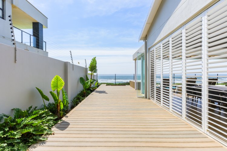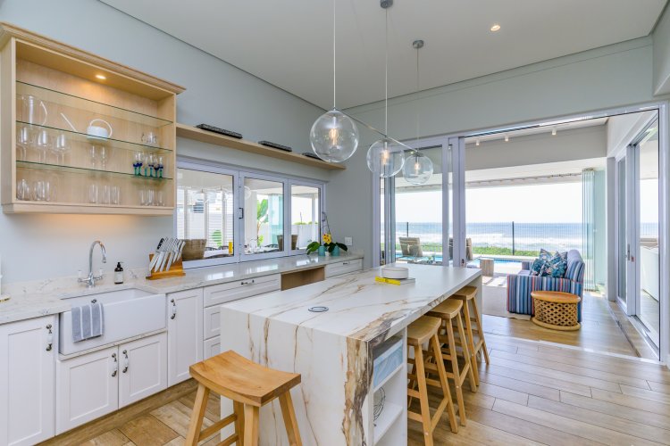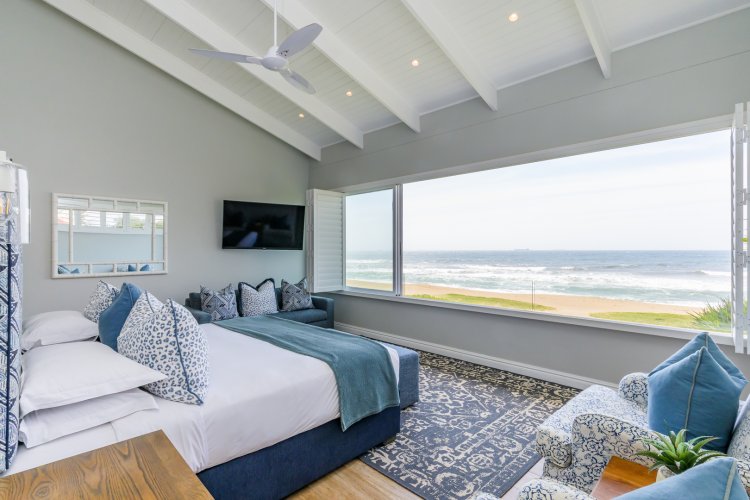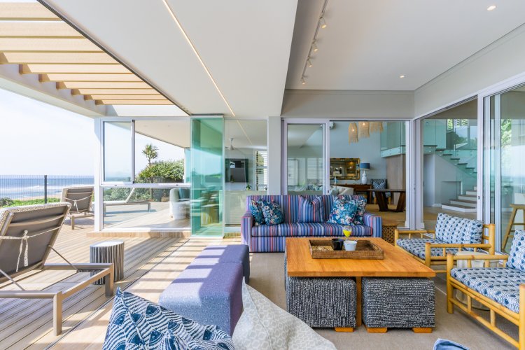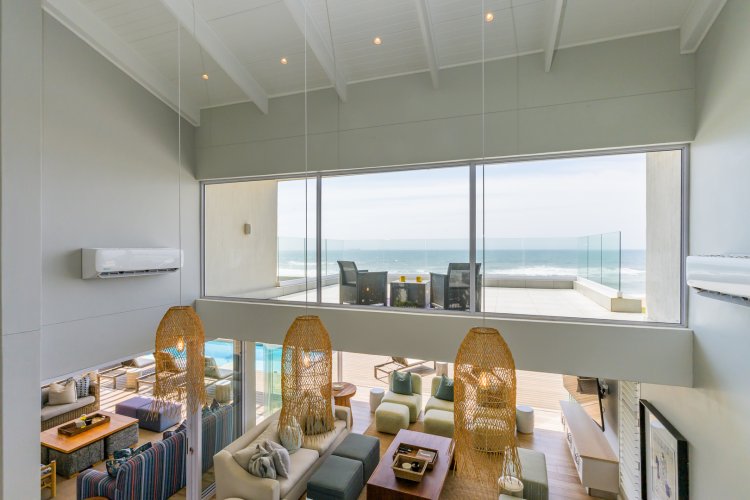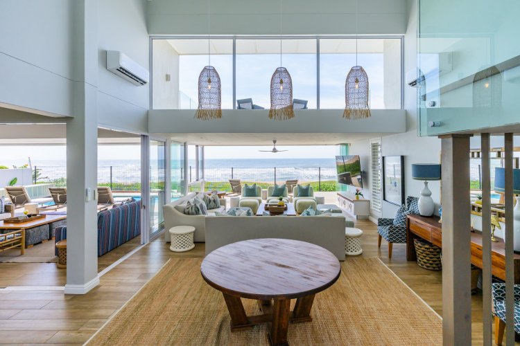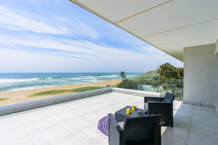 Try to catch your breath as you enter a space that simply cannot be competed with. As you arrive, discover an extraordinary, fully furnished beachfront residence where refined architectural design, uninterrupted ocean views, and effortless luxury come together in perfect harmony. This exceptional home offers an unparalleled coastal lifestyle – private, elegant, and designed for both relaxation and sophisticated entertaining. A striking double-volume glass entrance sets the tone, revealing expansive open-plan living spaces bathed in natural light and framed by sweeping sea vistas. The designer kitchen is both stylish and functional, featuring granite countertops, a gas hob, and a generously-sized, and completely separate, scullery and laundry, ideal for seamless everyday living or hosting guests. Floor-to-ceiling stacking glass doors open to a spectacular indoor–outdoor entertainment pavilion. Here, a built-in barbecue, integrated refrigeration, and an impressive 14-seater dining table create the ultimate setting for memorable gatherings. Beyond, a shimmering swimming pool with an automated, retractable cover is surrounded by luxury sun loungers and overlooks a manicured lawn that meets with the shoreline right on your doorstep. A discreet, transparent safety fence preserves uninterrupted ocean views, while an outdoor shower offers a tranquil transition from beach to home. Accommodation The residence comprises six beautifully appointed en-suite bedrooms, offering privacy and comfort for family and guests alike: • Four bedrooms on the lower level, including two sea-facing suites • A privately positioned guest suite with its own entrance • Two upstairs bedrooms with elevated, panoramic ocean views Additional living areas include a formal lounge, television lounge, guest powder room, and an elegant upstairs lounge – providing multiple spaces to relax, retreat, or entertain. Additional Features • Offered fully-furnished with bespoke designer decor • Backup generator ensuring uninterrupted power • Three large water tanks for reliable water supply • Three garages providing secure parking and storage This rare beachfront offering presents a turnkey luxury retreat – perfect as a primary residence, holiday home, or international investment. Simply arrive and immerse yourself in the timeless beauty of oceanfront living, where every day is enhanced by sea breezes, golden light, and the soothing sound of the waves.