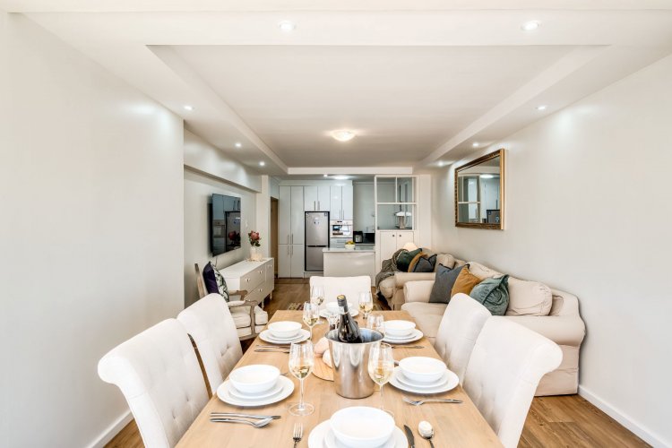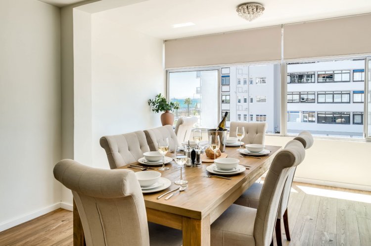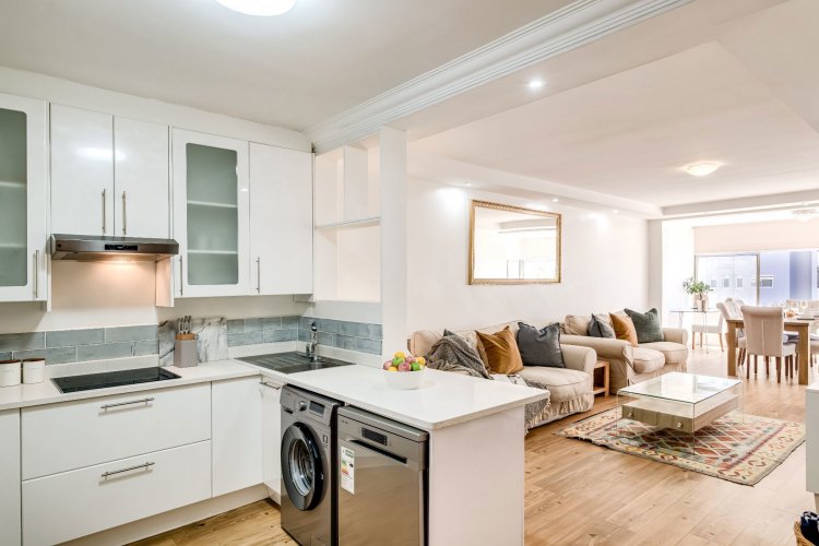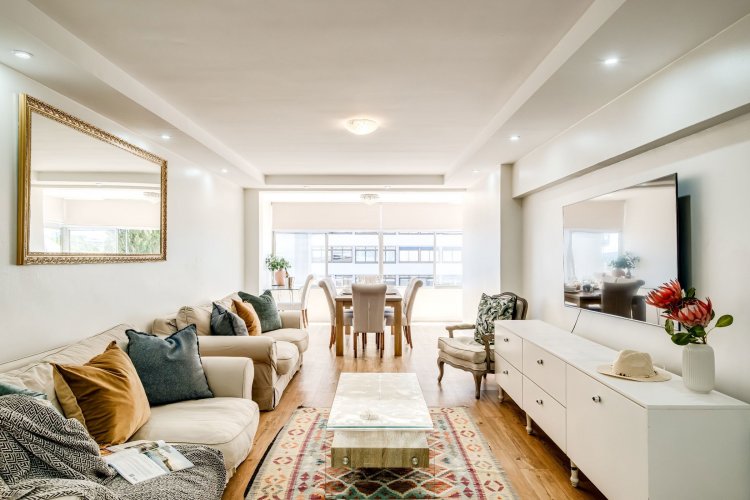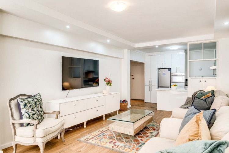 Airbnb friendly. Yet another Exclusive mandate in Mouille Point. This apartment is sold fully furnished & equipped. Side sea facing unit, renovated in a building that has just experienced a massive makeover still in progress. This beautiful apartment enjoys a modern open plan kitchen and new bathroom including a bath and separate shower.