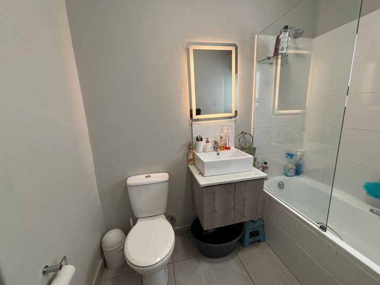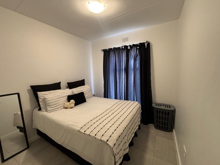 Both bedrooms are well-sized, and the modern bathroom includes both a bathtub and a shower for added comfort. Quality finishes run throughout the home, including aluminium windows and LED mirrors, giving the apartment a fresh, upmarket feel.