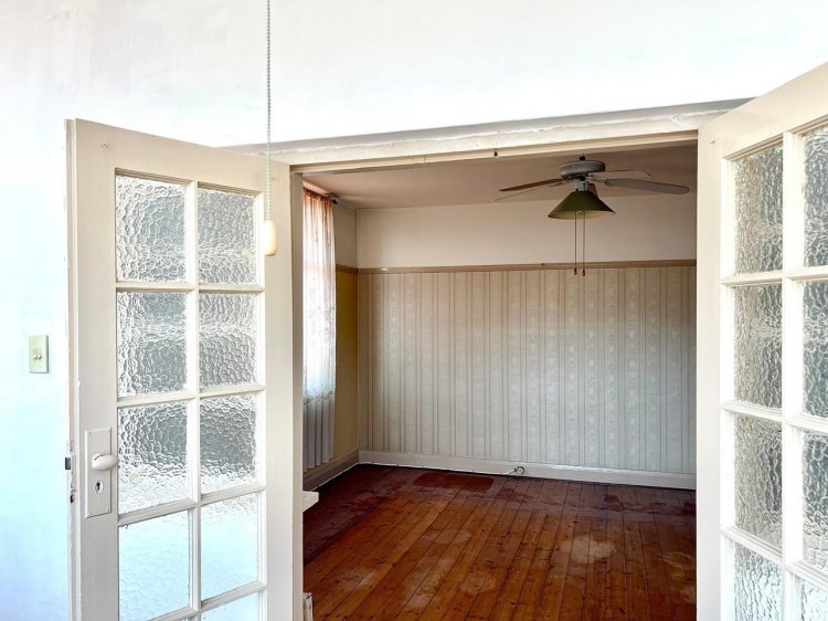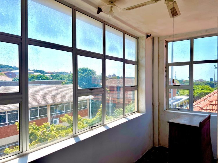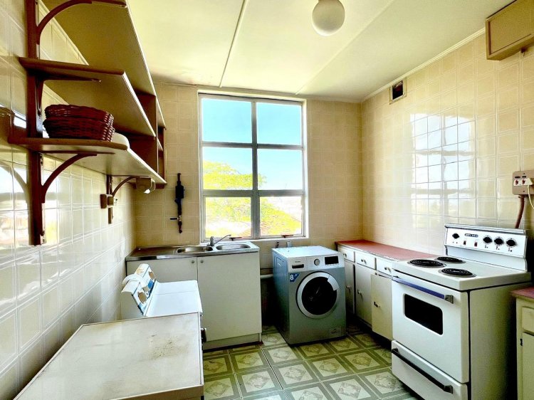 The kitchen is light and bright and is in need of modernising. The spacious open plan lounge dining area opens onto a light bright enclosed balcony.