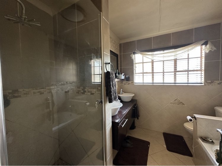 The home truly shines when it comes to entertaining. A built-in bar in the entertainment room and a large, private lapa with a built-in braai offer the ultimate setting for hosting guests. Stylish wallpapered feature walls add a touch of warmth and sophistication throughout.
