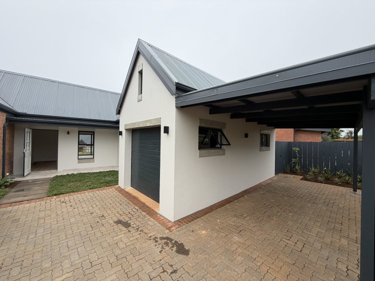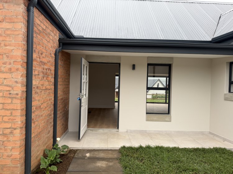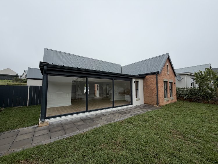This beautifully designed 2-bedroom, 2-bathroom freestanding home for sale in Hilton offers an exceptional lifestyle within the secure and sought-after St John’s Village Estate. Currently nearing completion, the home enjoys breathtaking views across the vineyards and the open grazing lands where the estate’s resident Nguni herd roam — a true reflection of relaxed Midlands country living blended with modern convenience. The light-filled, double-volume living spaces and stylish vinyl flooring create an inviting, contemporary atmosphere ideal for both entertaining and everyday comfort.