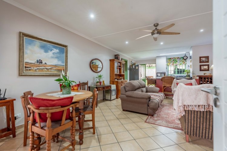 Home one 2 bedroom 2 bathroom Study Laundry Open plan kitchen, dining, and lounge area. The main bedroom boasts a walk-in cupboard and main en suite. Own Braai/entertainment area, own private garden. 2 car carports