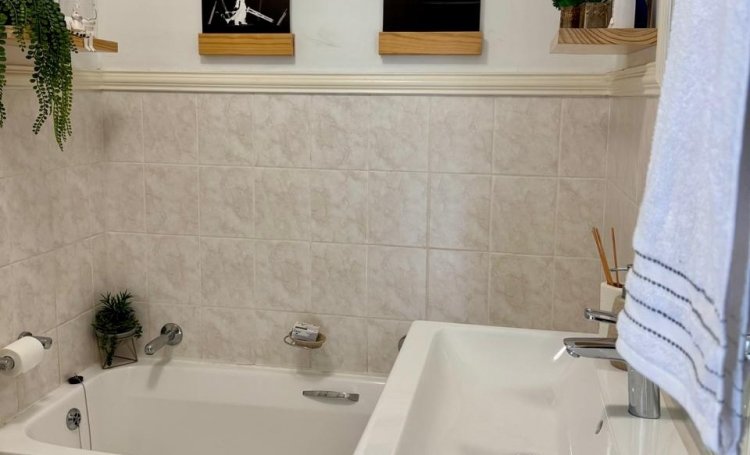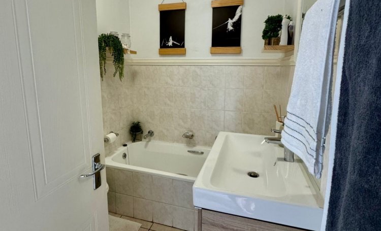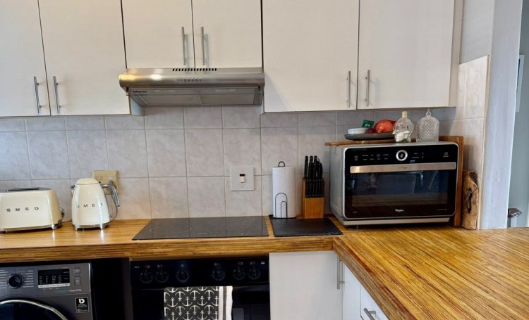 The kitchen is equipped with extractor fan, electric oven and ceramic top hob with space for a fridge/freezer and a washing machine.