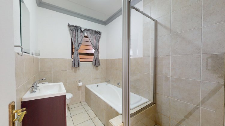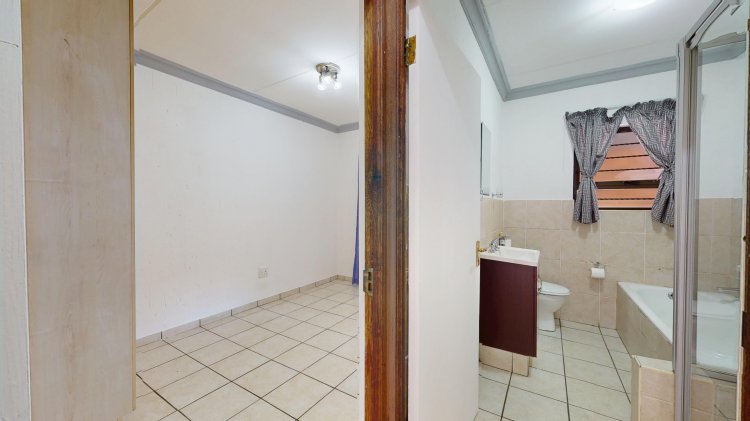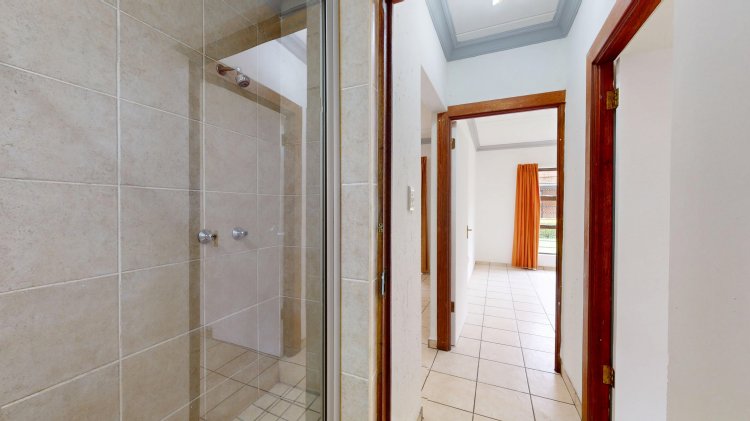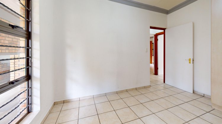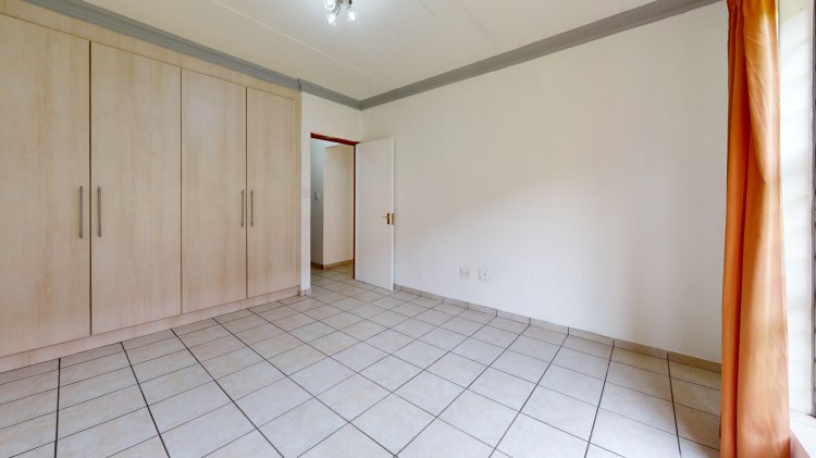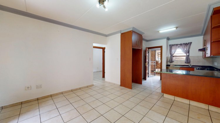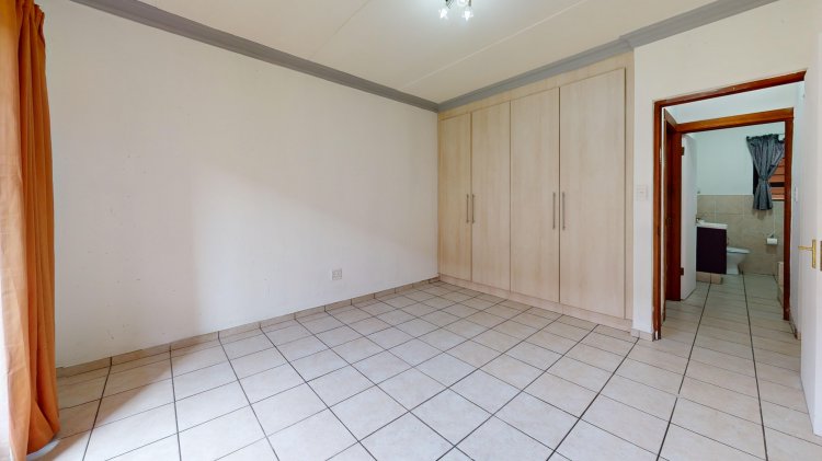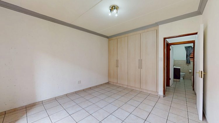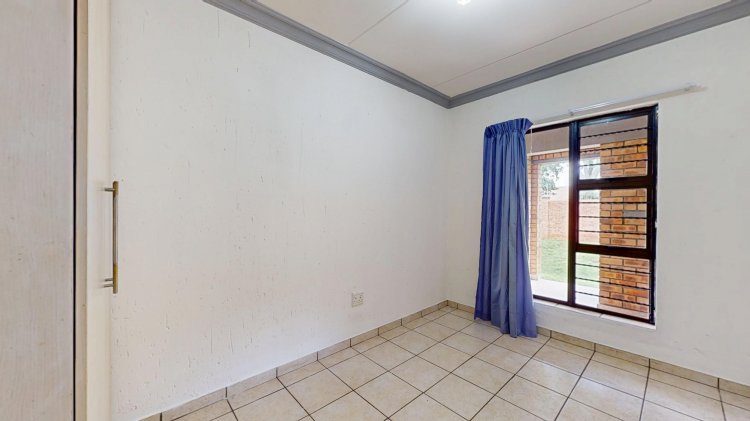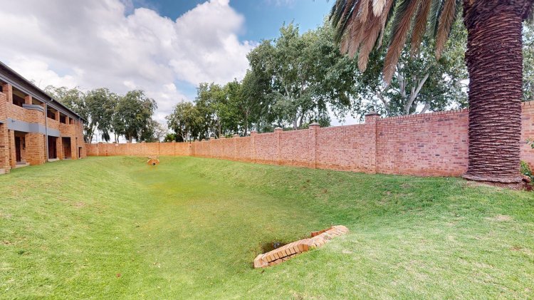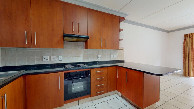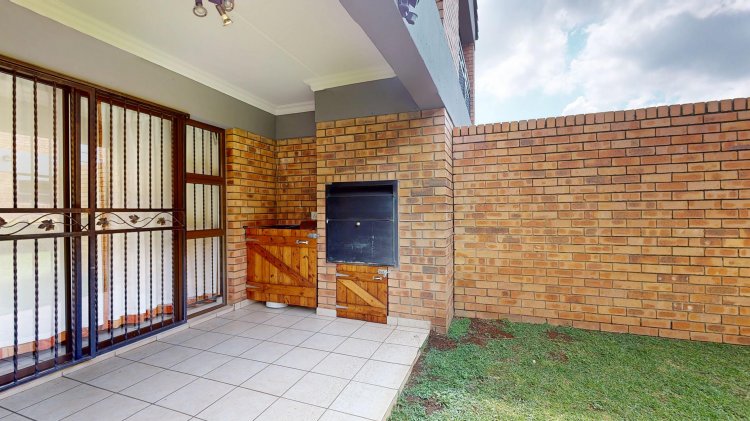 Discover this neat-as-a-pin ground floor unit located in the highly sought-after Ravenswood Mews. The welcoming, practical kitchen features built-in cupboards and tiled flooring. It flows seamlessly into the open-plan lounge, creating a warm and functional living space. Sliding doors lead to a covered porch with a built-in braai, overlooking the well-kept green lawn.