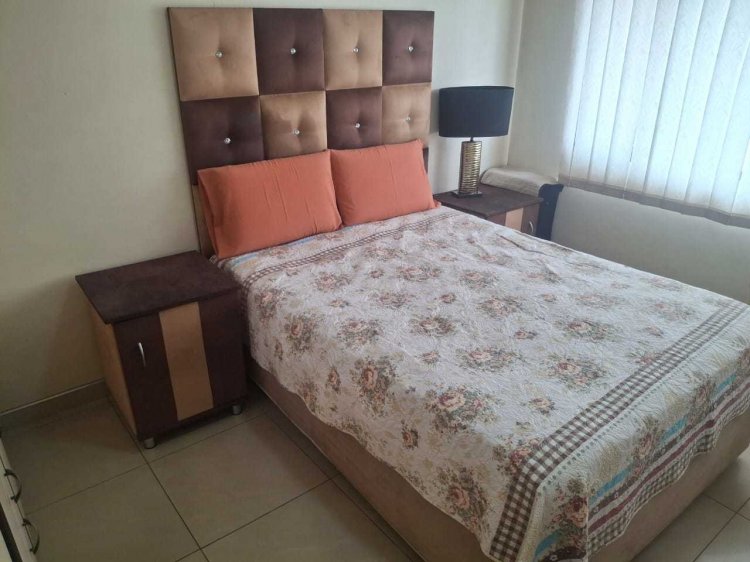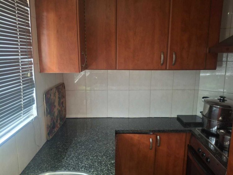 3 Bedroom apartment with built in cupboards. General bathroom with shower, basin and toilet. Fully fitted kitchen with glass top stove, undercounter oven, extractor fan, and black granite tops.