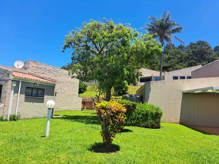 Just off the living room is a sun room or office which opens onto the front verandah and garden. A spacious verandah with a built in braai, and courtyard. A further verandah off the sun room offers a comfortable private area, and opens onto to a large lawn, which is part of the common garden. A passageway leads to two bedrooms and a family bathroom. A sunny main bedroom with a modern bathroom with bath, loo and vanity. Large built in cabinets with mirror doors. A second bedroom with built in cabinets. The family bathroom has a double shower, vanity and loo. The third bedroom is accessed via the laundry and is at the back of the townhouse. A large bedroom with access to the outside passageway. A lock up garage is attached to the unit.
