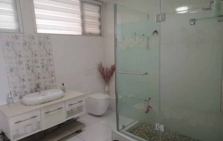 It also comes with three bedrooms, and all are sea-facing, allowing you to wake up to a peaceful morning. Two bedrooms share a bathroom with a shower, toilet, and a beautiful basin with a designed fitting. The Main comes with walk-in cupboards and dressing space, and a beautiful shower with a basin. The kitchen is fully cup-boarded with all the most modern features you can think of. Two communal pools provide for both young and old. The security is not a threat as the entry is controlled from both the garage and reception area.