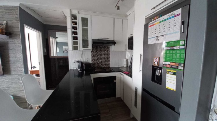 It is fully tiled and has an open plan fully fitted kitchen, that has been tastefully refurbished with lovely, designer cupboards.