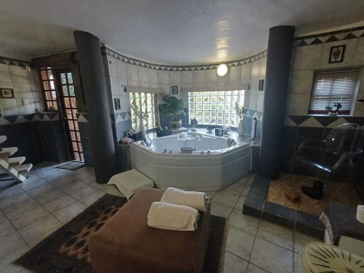 Beautifully meticulously maintained shaded garden, Sparkling pool, Spectacular entertainment lapa perfect for hosting unforgettable gatherings. Direct access to enclosed Boating site, huge garaging for 2 vechiles, 2 store rooms.