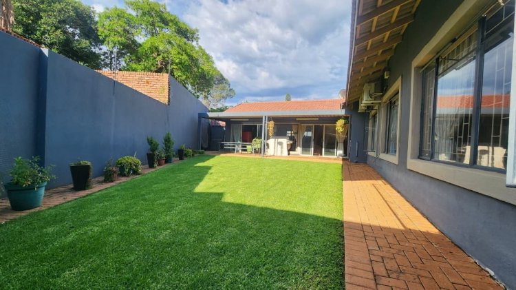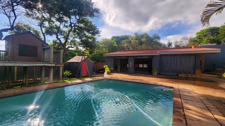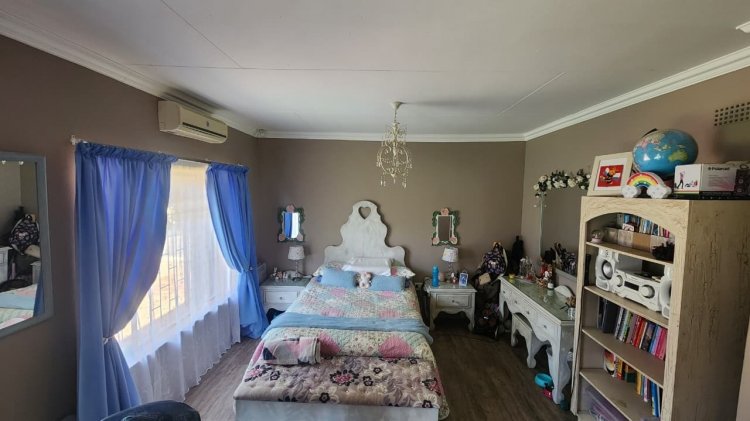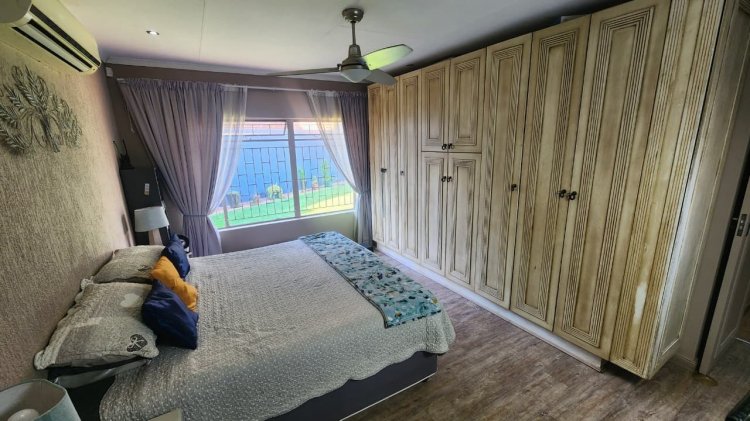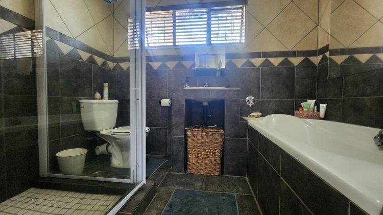 For those who enjoy entertaining, the property boasts two entertainment areas—one attached to the house and another positioned next to the swimming pool. The attached entertainment area includes a dedicated bar with cupboards, while both spaces offer built-in braais, making it perfect for hosting friends and family. The beautifully landscaped garden features an automatic irrigation system, and the included jungle gym adds extra value for families with children.