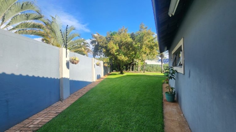 Parking and storage are abundant, with two garages, covered parking for up to six vehicles, an additional carport for trailer storage, and three Wendy houses providing ample storage space. Security is top-tier, offering a fully walled perimeter with high walls, CCTV, an alarm system, security beams, electric fencing (double on some sides), an intercom system, and an access gate fitted with a D6 smart motor.