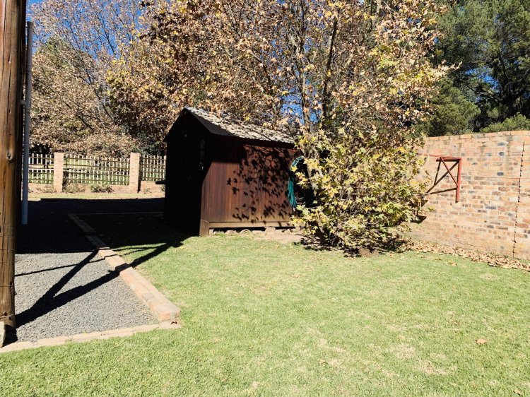The property is fully fenced and completely pet friendly. A Wendy house in the garden provides practical storage for garden tools and equipment. A 2,500-litre JoJo tank with a pump adds peace of mind during water interruptions.