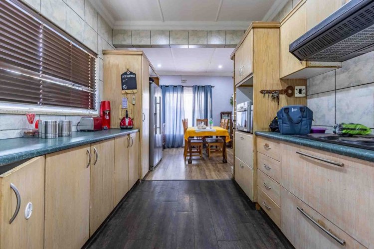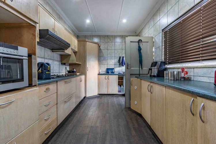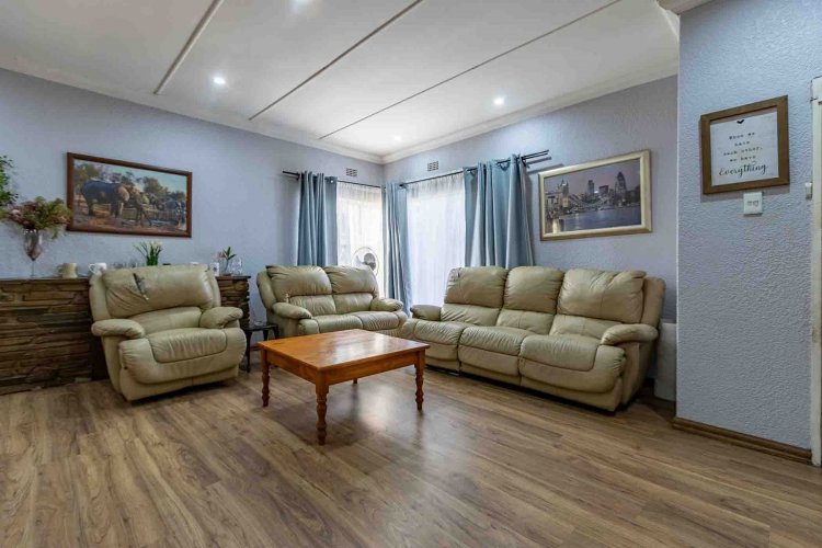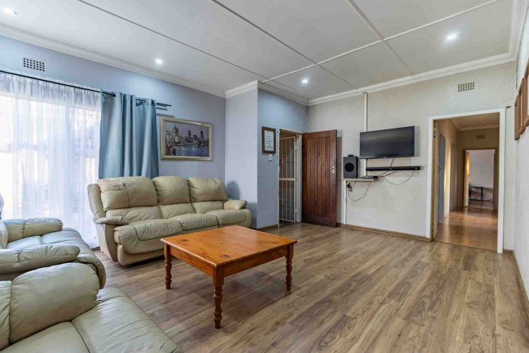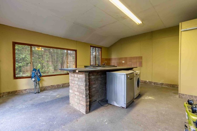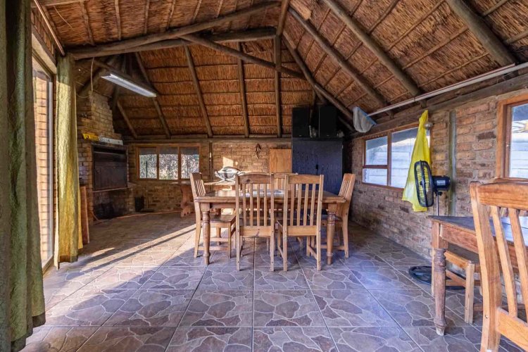 Outside is an entertainer's dream with a large thatched, tiled lapa, built-in braai, and a huge yard offering endless potential. There is also an outside laundry area with space for 4 appliances, two store rooms, a single manual garage, and three carports.