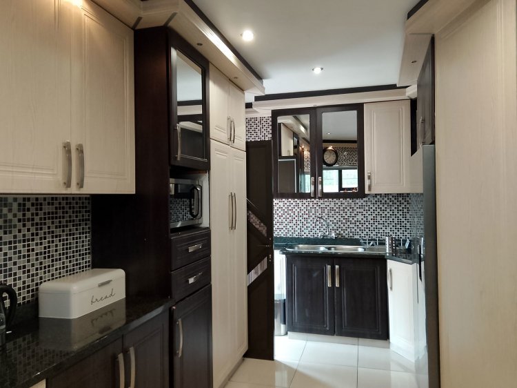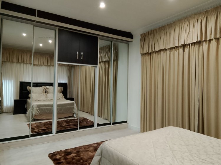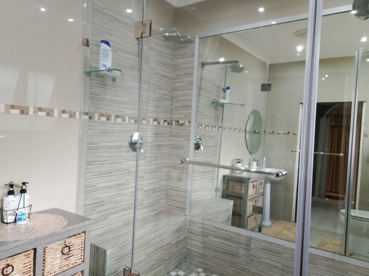 The main bedroom is spacious and has added space that could be used as a study or gym. The double automated garage can fit three vehicles. Live in comfort as it offers. Enjoy the added benefit of an inverter with Jojo tank, and solar geyser.