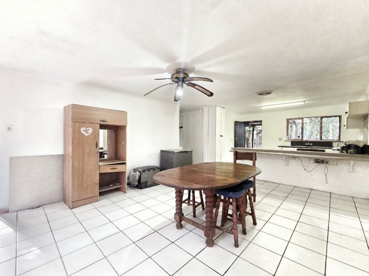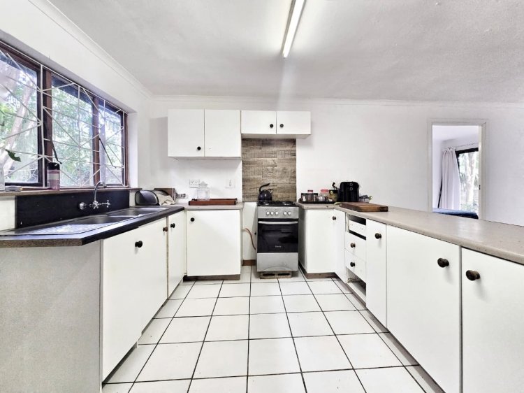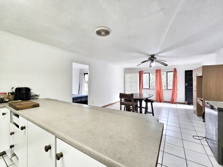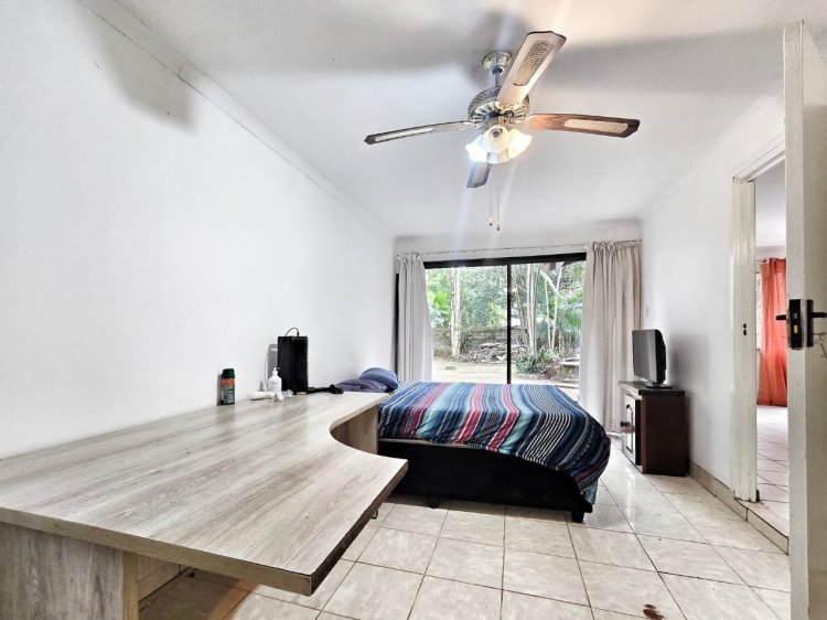 Well situated within the Golf View Park suburb of KwaMbonambi, this versatile home has a bonus granny-flat and plenty of potential. The main house boasts built-in cupboards in all three bedrooms, two bathrooms, an open-plan kitchen, lounge, and dining area, leading out to a concrete patio and potential braai area. The yard includes multiple Wendy Houses for storage and a large undercover parking area as you enter.