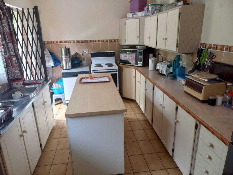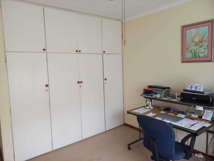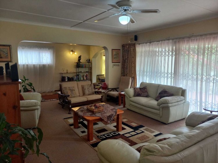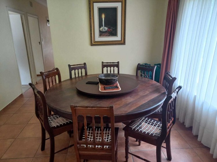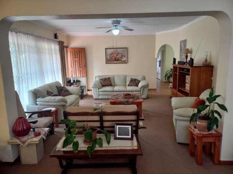Property Features: • 2 lounges — formal and TV (currently used as a reading area) • Spacious kitchen with built-in cupboards, opening onto a paved backyard • Generous dining room perfect for entertaining • Laundry room with toilet and shower • 3 well-sized bedrooms with built-in cupboards • Main bedroom with wall-to-wall cupboards, en-suite bath, and private patio overlooking the garden * 2 Bathrooms: Main bathroom with shower and bath, en-suite bathroom has a bath • Large, well-maintained front lawn and garden • Double garage, alarm system, and fully walled for privacy • Pet-friendly * Wendy house that can be used as a store room