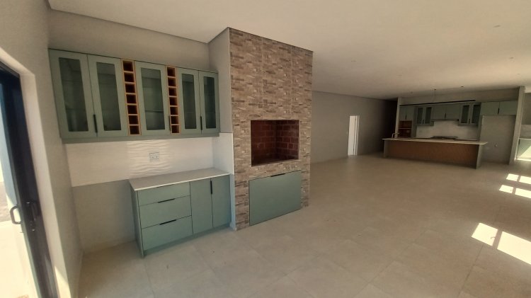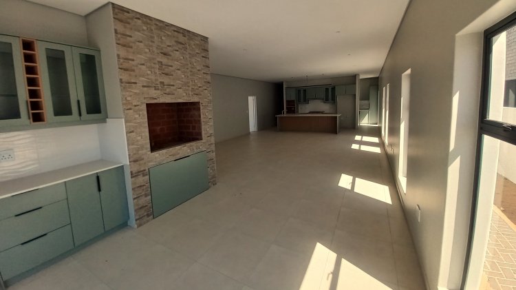 Seamless Entertaining: The living area boasts a built-in braai and sliding doors that open onto a tranquil patio—perfect for enjoying the West Coast air.