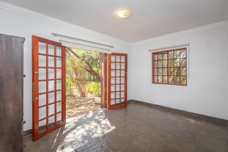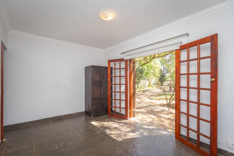 The swimming pool sits in the spacious garden—perfect for relaxing and enjoying the sweltering summers days in Harties. The patio and bedrooms overlook the large, established garden with mature trees, creating a safe and shaded environment ideal for children and pets to play freely. With ample space to run, explore, or relax under the trees, the garden offers the perfect outdoor setting for family life, weekend activities, or simply enjoying the peaceful natural surroundings. Ideal for those seeking space, simplicity, and serenity in a secure estate setting.