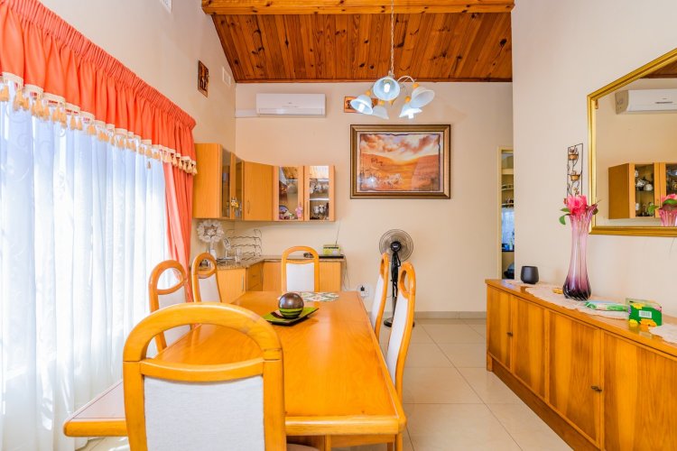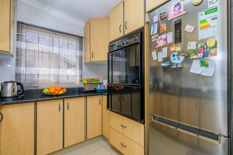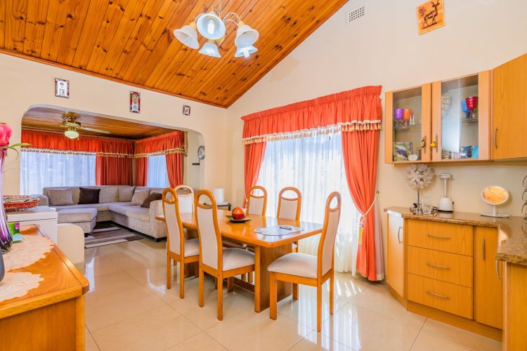 The open plan design, complemented by high ceilings in the dining area, and an elegant, light filled lounge creates a warm and inviting atmosphere. At the centre of the home lies a gourmet kitchen, with ample cupboards, generous worktops, eye-level oven, hob, and extractor fan. Three spacious bedrooms, with custom-made built-in cupboards, a well-sized family bathroom and guest toilet. Lovingly cared for by its current owner for over 40 years, this home exudes warmth, comfort and character. Outdoor living is a delight with the covered patio, large awning at the rear, perfect for family gatherings and entertainment, a lovely, manicured garden to enjoy peaceful moments.