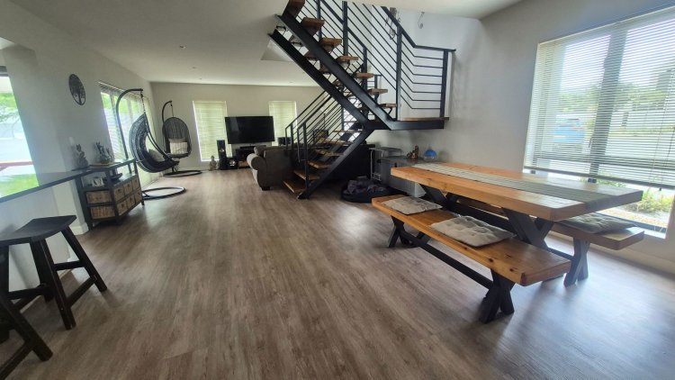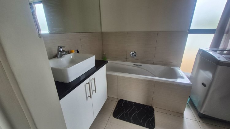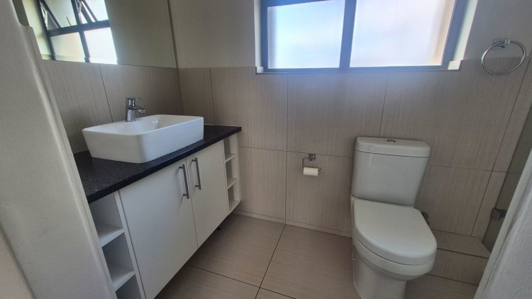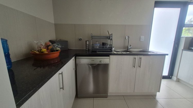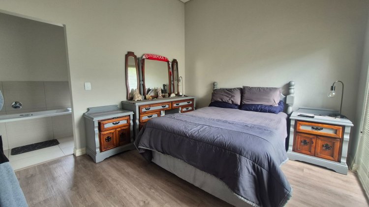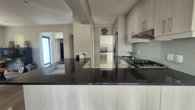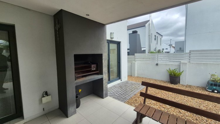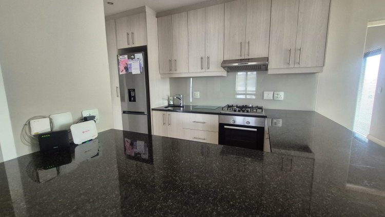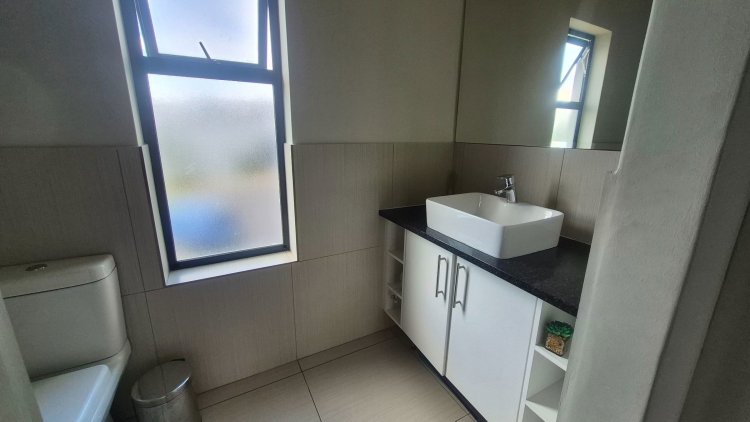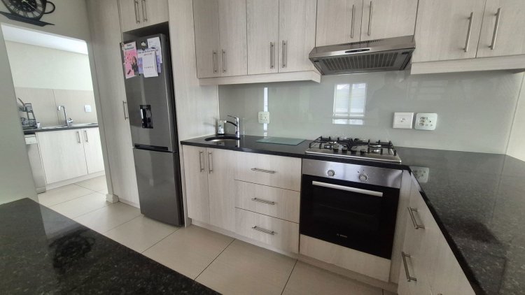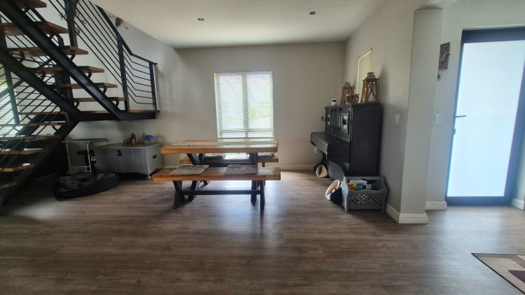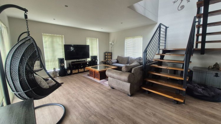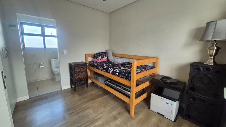 Best situated family house in popular Security Estate. This house is in a quiet cul de sac next to the green play area. Lock up and go is the first thing that is coming to mind. 3 bedrooms all with b.i.c. and its own bathroom. Main bedroom is situated downstairs. The spacious Living area walk out on a braai stoep. Also a guest bathroom downstairs. Open plan kitchen with a separate scullery. Double garage with automate garage doors and enough off road parking.