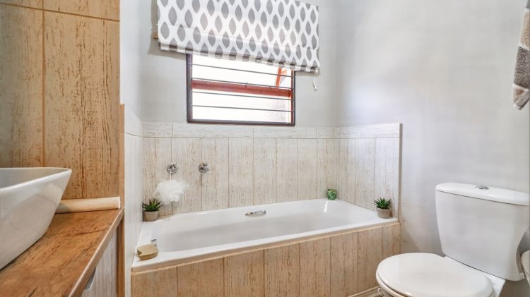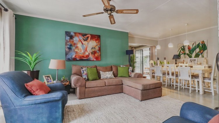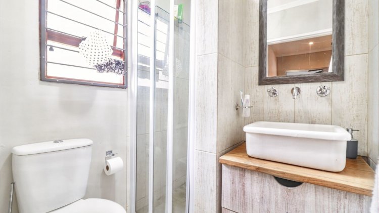 The home offers three spacious bedrooms, including a main bedroom with a walk-in closet and a modern en-suite bathroom. A second contemporary bathroom services the remaining bedrooms. Stylish finishes throughout complete this neat and well-maintained townhouse, situated in a secure complex with low levies — including water.