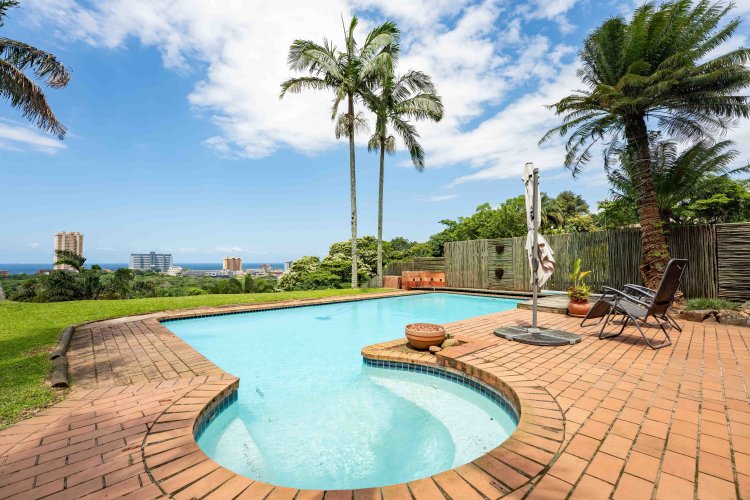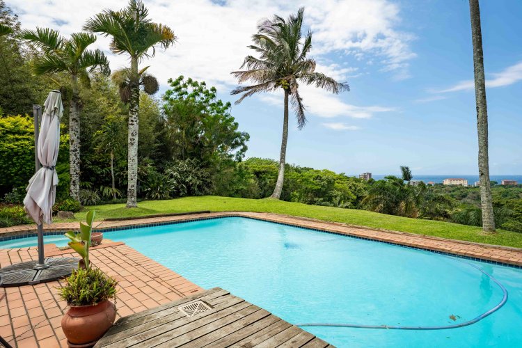 The covered patio opens onto a private sparkling pool and a beautifully manicured, well-kept garden with sweeping sea views—ideal for entertaining guests or simply enjoying the coastal breeze in peace and privacy. Additional features include a double lock-up garage with internal access and ample parking for up to four vehicles. The property also includes a Wendy house, offering additional storage.