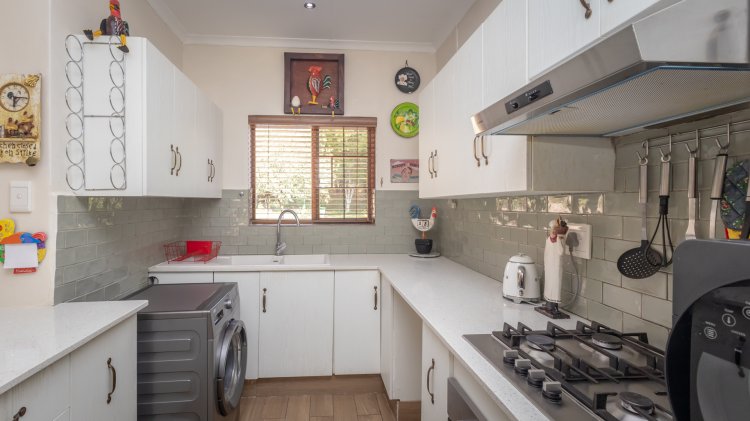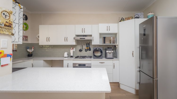 Exclusive Mandate. Situated in the sought-after The Coves Estate, this immaculate and pet-friendly home offers comfortable and sustainable living in a tranquil setting. The modern kitchen features Caesarstone countertops and a gas hob, blending practicality with stylish design. The living area includes air conditioning and a fireplace, creating a cozy and inviting atmosphere.